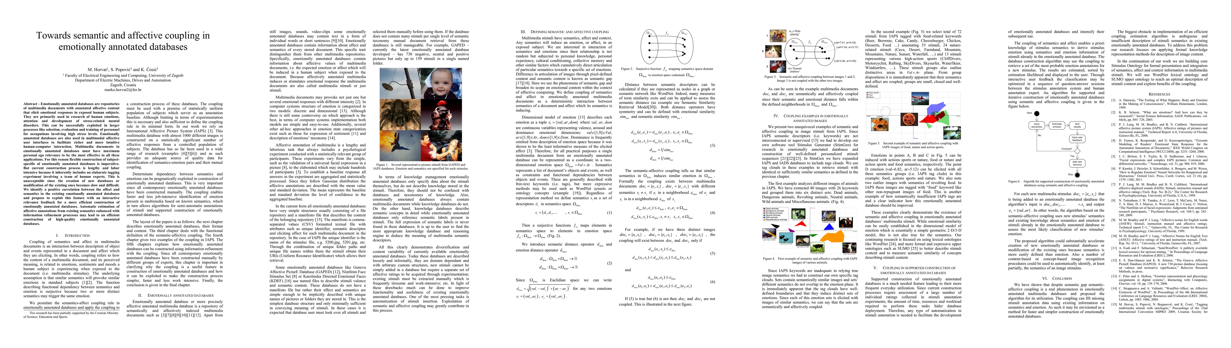 Emotionally annotated databases are repositories of multimedia documents with annotated affective content that elicit emotional responses in exposed human subjects. They are primarily used in research of human emotions, attention and development of stress-related mental disorders. This can be successfully exploited in larger processes like selection, evaluation and training of personnel for occupations involving high stress levels. Emotionally annotated databases are also used in multimodal affective user interfaces to facilitate richer and more intuitive human-computer interaction. Multimedia documents in emotionally annotated databases must have maximum personal ego relevance to be the most effective in all these applications. For this reason flexible construction of subject-specific of emotionally annotated databases is imperative. But current construction process is lengthy and labor intensive because it inherently includes an elaborate tagging experiment involving a team of human experts. This is unacceptable since the creation of new databases or modification of the existing ones becomes slow and difficult. We identify a positive correlation between the affect and semantics in the existing emotionally annotated databases and propose to exploit this feature with an interactive relevance feedback for a more efficient construction of emotionally annotated databases. Automatic estimation of affective annotations from existing semantics enhanced with information refinement processes may lead to an efficient construction of high-quality emotionally annotated databases.