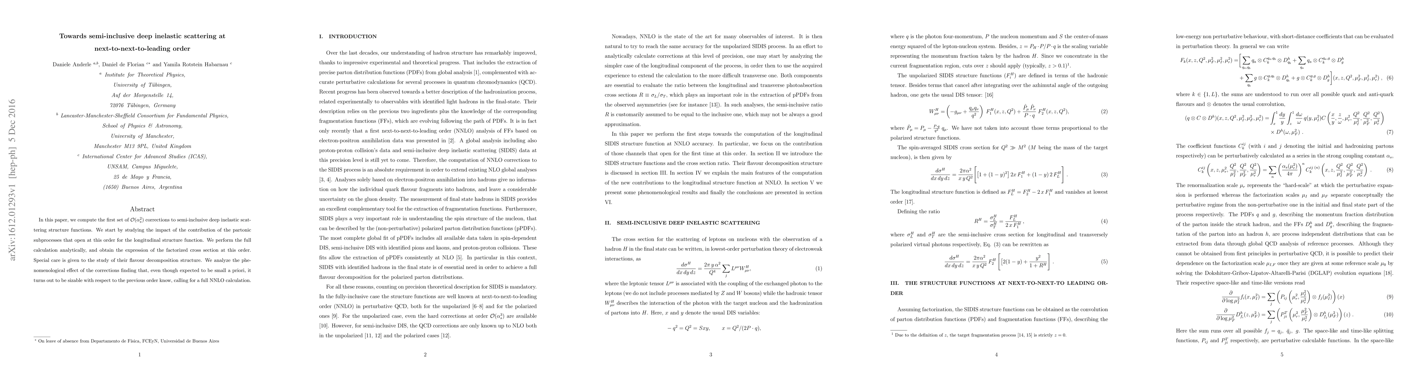 In this paper, we compute the first set of ${\cal O}(\alpha_s^2)$ corrections to semi-inclusive deep inelastic scattering structure functions. We start by studying the impact of the contribution of the partonic subprocesses that open at this order for the longitudinal structure function. We perform the full calculation analytically, and obtain the expression of the factorized cross section at this order. Special care is given to the study of their flavour decomposition structure. We analyze the phenomenological effect of the corrections finding that, even though expected to be small a priori, it turns out to be sizable with respect to the previous order know, calling for a full NNLO calculation.