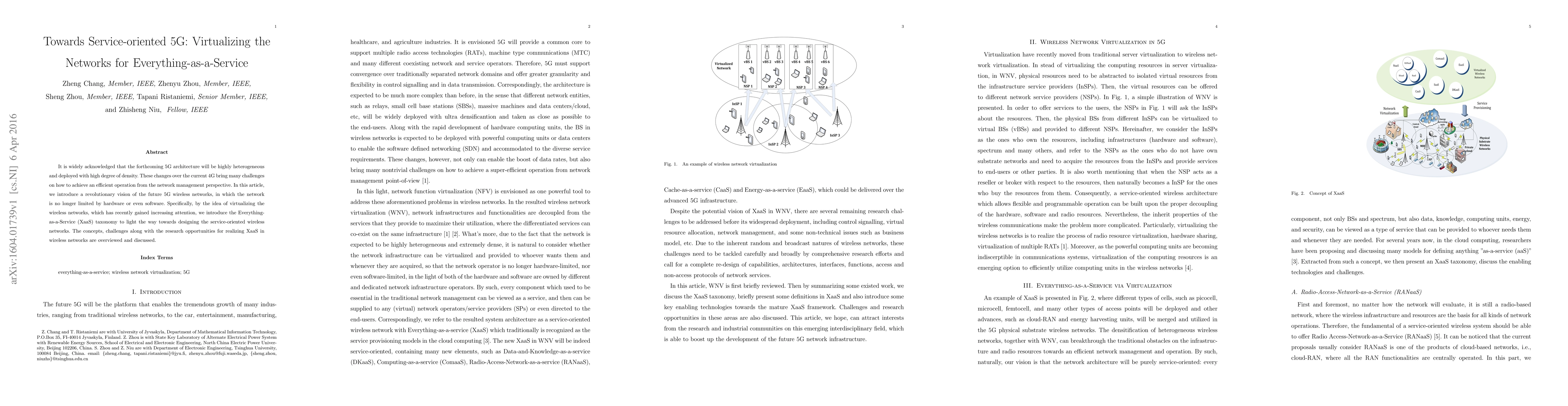 This paper proposes a vision for future 5G wireless networks by virtualizing the network infrastructure, enabling an "Everything-as-a-Service" (XaaS) model. It discusses the challenges and opportunities in designing service-oriented networks to efficiently manage the dense and heterogeneous 5G architecture.