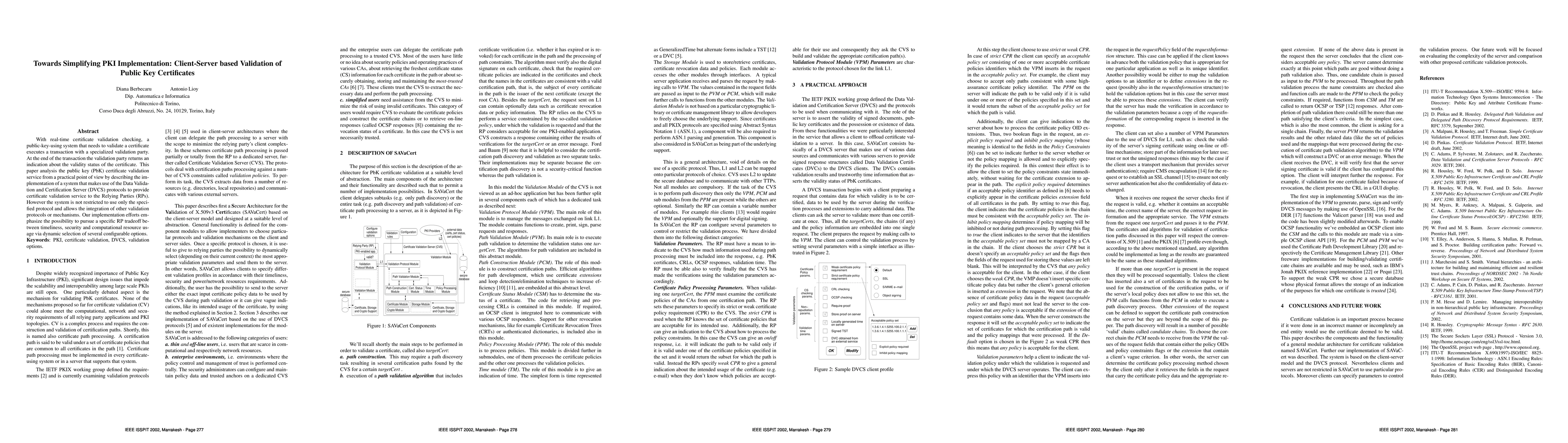 The paper describes the implementation of a system, SAVaCert, that provides certificate validation service to Relying Parties (RPs) using Data Validation and Certification Server (DVCS) protocols. The system allows for dynamic selection of configurable options to pursue a specific RP tradeoff between timeliness, security, and computational resource usage.