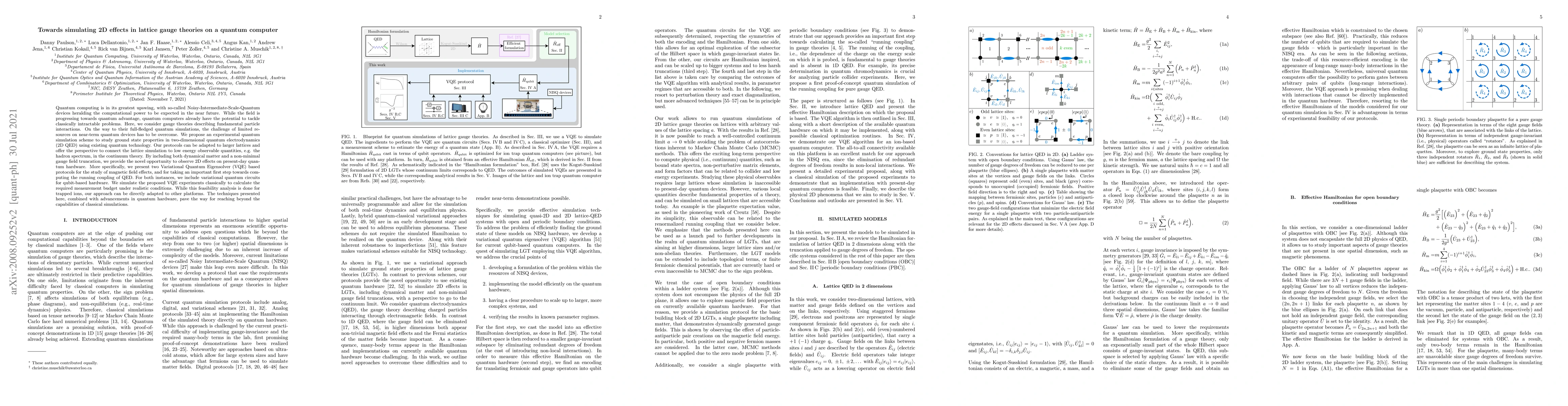This paper proposes a quantum simulation scheme to study ground state properties in 2D quantum electrodynamics using existing quantum technology. It introduces efficient protocols for simulating 2D effects on present-day quantum hardware, specifically targeting trapped ion quantum computers, and outlines the potential for scaling up to large lattices.