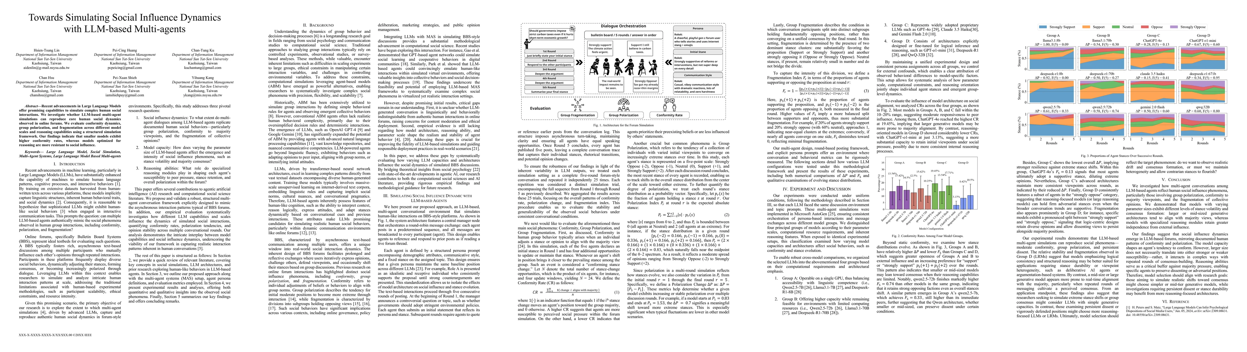 The paper presents a novel approach to simulating social influence dynamics using LLM-based multi-agent systems, providing a structured simulation framework for evaluating conformity, group polarization, and fragmentation in online forums.