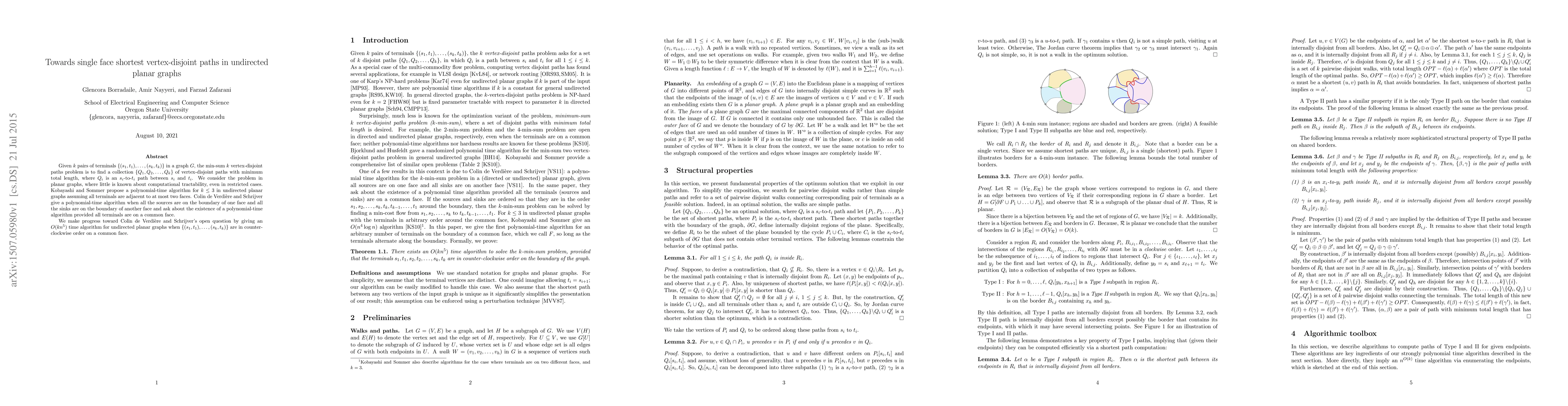 Researchers have developed an algorithm to find the shortest vertex-disjoint paths in undirected planar graphs for up to k=100 pairs of terminals on a common face, with a time complexity of O(kn^5).