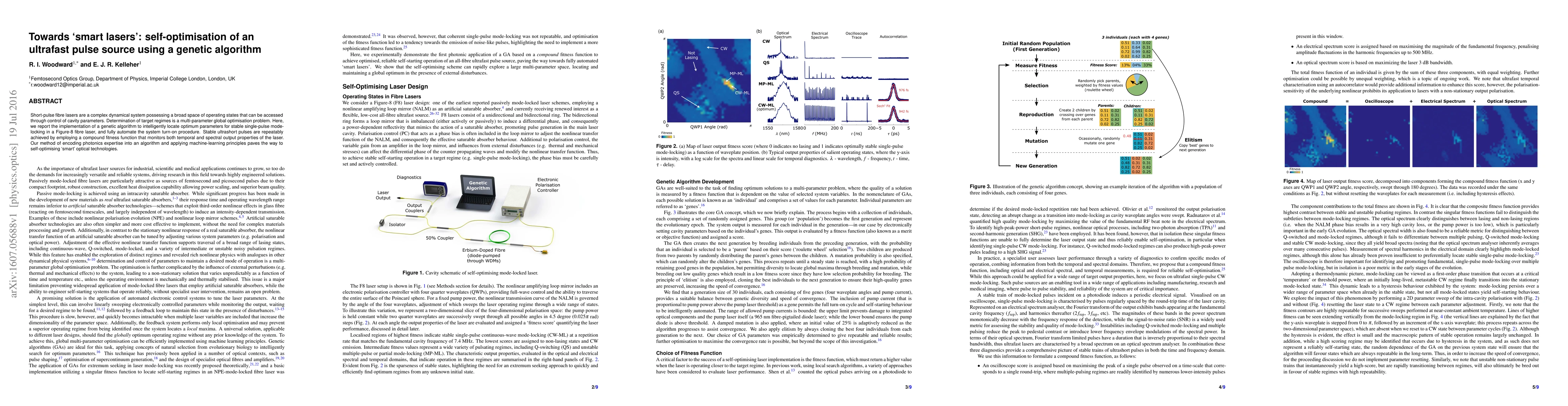 This paper presents a genetic algorithm for optimizing the parameters of a Figure-8 fibre laser to achieve stable single-pulse mode-locking, automating the turn-on procedure. The algorithm uses a compound fitness function to monitor both temporal and spectral output properties, paving the way for self-optimizing smart optical technologies.