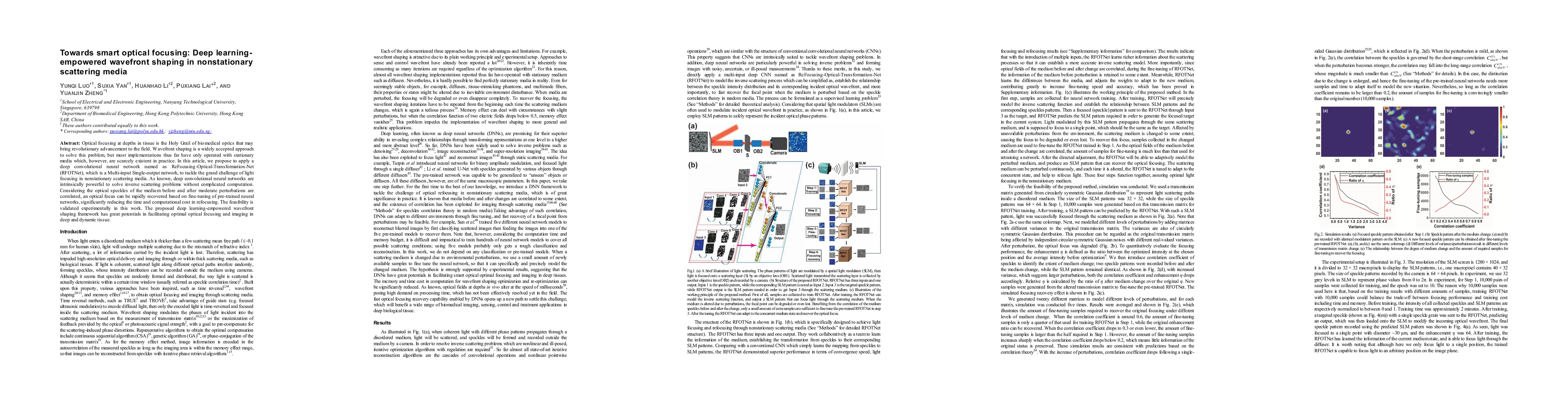 This paper proposes a deep learning-based approach using RFOTNet to enable optical focusing in nonstationary scattering media, addressing the challenge of focusing light in dynamic tissue environments. Experimental validation demonstrates the effectiveness of the method in reducing computational costs and time for refocusing.