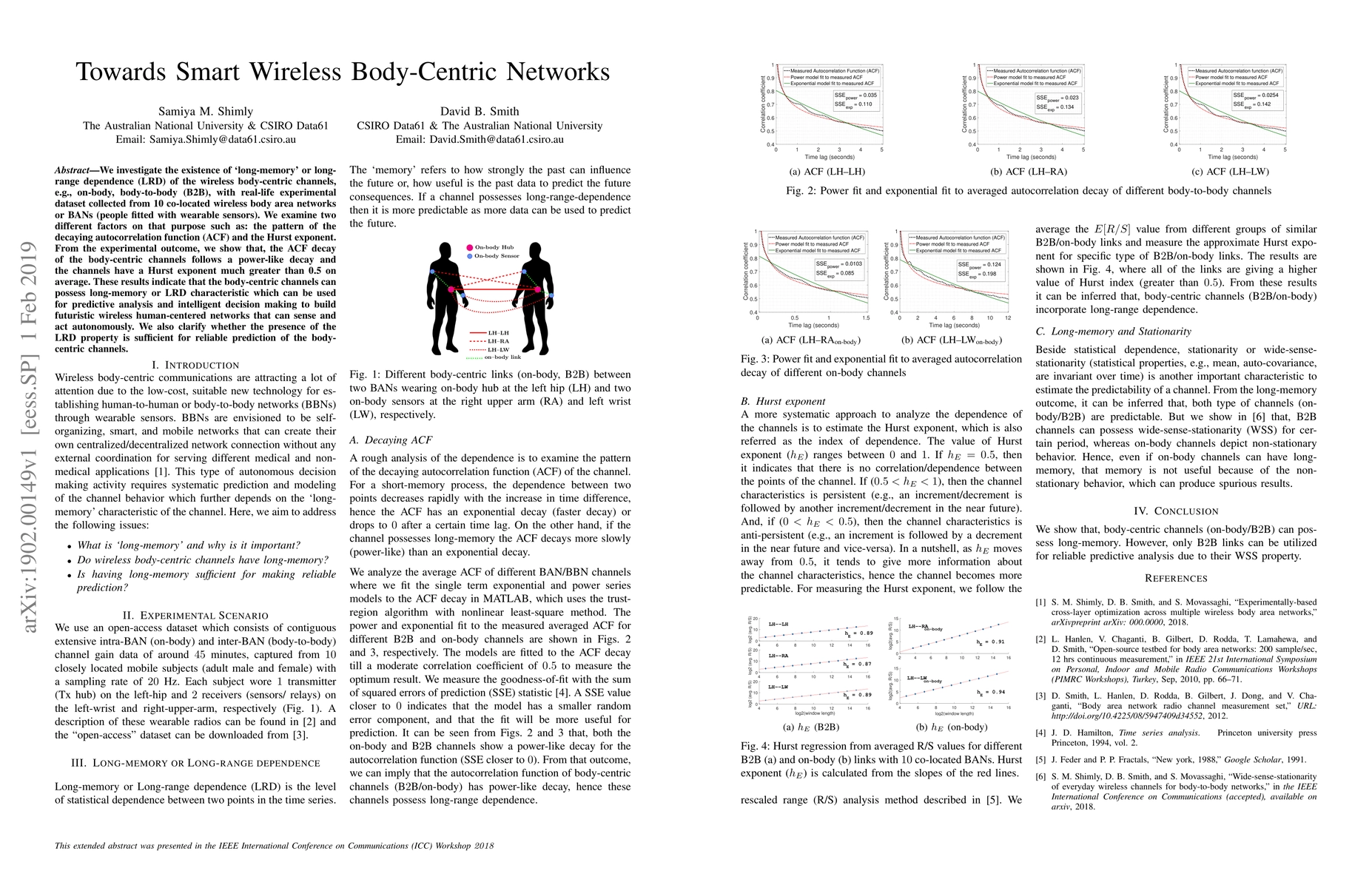 We investigate the existence of 'long-memory' or long-range dependence (LRD) of the wireless body-centric channels, e.g., on-body, body-to-body (B2B), with real-life experimental dataset collected from 10 co-located wireless body area networks or BANs (people fitted with wearable sensors). We examine two different factors on that purpose such as: the pattern of the decaying autocorrelation function (ACF) and the Hurst exponent. From the experimental outcome, we show that, the ACF decay of the body-centric channels follows a power-like decay and the channels have a Hurst exponent much greater than 0.5 on average. These results indicate that the body-centric channels can possess long-memory or LRD characteristic which can be used for predictive analysis and intelligent decision making to build futuristic wireless human-centered networks that can sense and act autonomously. We also clarify whether the presence of the LRD property is sufficient for reliable prediction of the body-centric channels.