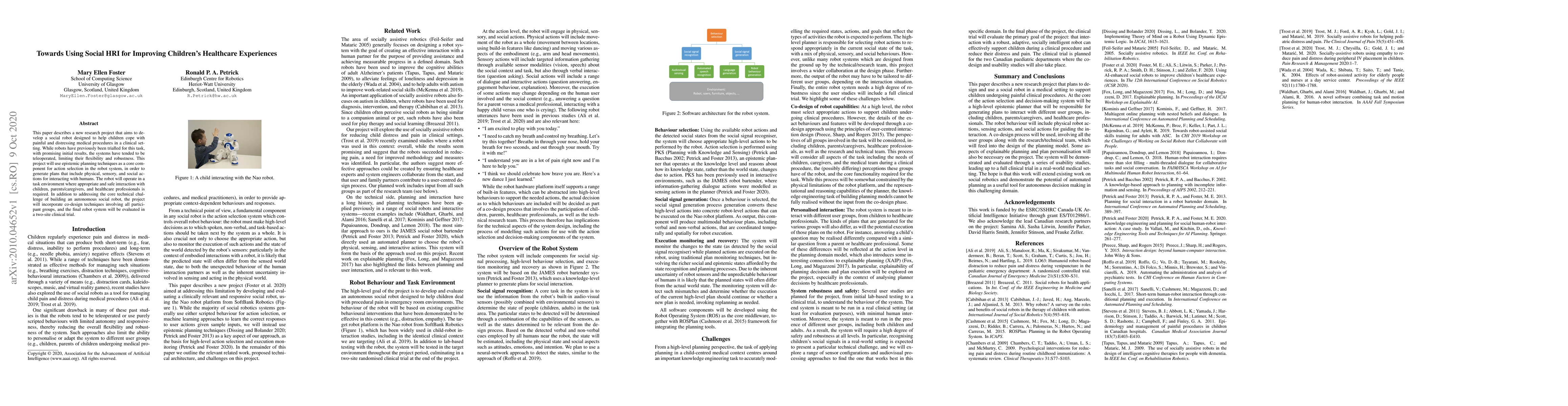 This paper describes a new research project that aims to develop a social robot designed to help children cope with painful and distressing medical procedures in a clinical setting. While robots have previously been trialled for this task, with promising initial results, the systems have tended to be teleoperated, limiting their flexibility and robustness. This project will use epistemic planning techniques as a core component for action selection in the robot system, in order to generate plans that include physical, sensory, and social actions for interacting with humans. The robot will operate in a task environment where appropriate and safe interaction with children, parents/caregivers, and healthcare professionals is required. In addition to addressing the core technical challenge of building an autonomous social robot, the project will incorporate co-design techniques involving all participant groups, and the final robot system will be evaluated in a two-site clinical trial.