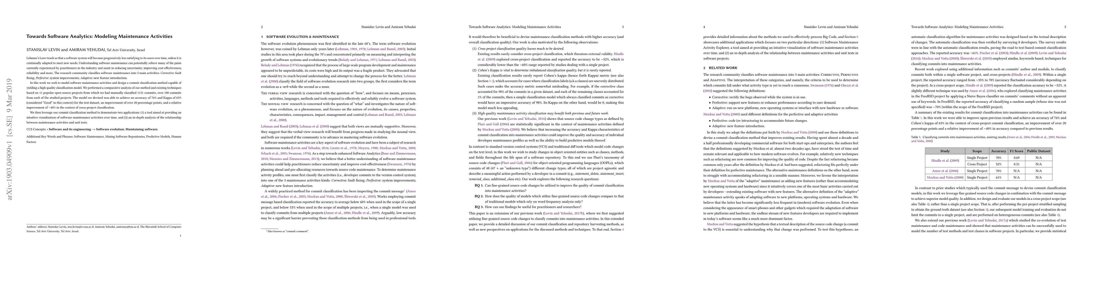 This paper models software maintenance activities into corrective, perfective, and adaptive categories, developing a commit classification method achieving 76% accuracy and 63% Kappa agreement. It demonstrates applications including a visualization tool and an analysis of maintenance activities' relationship with unit tests.