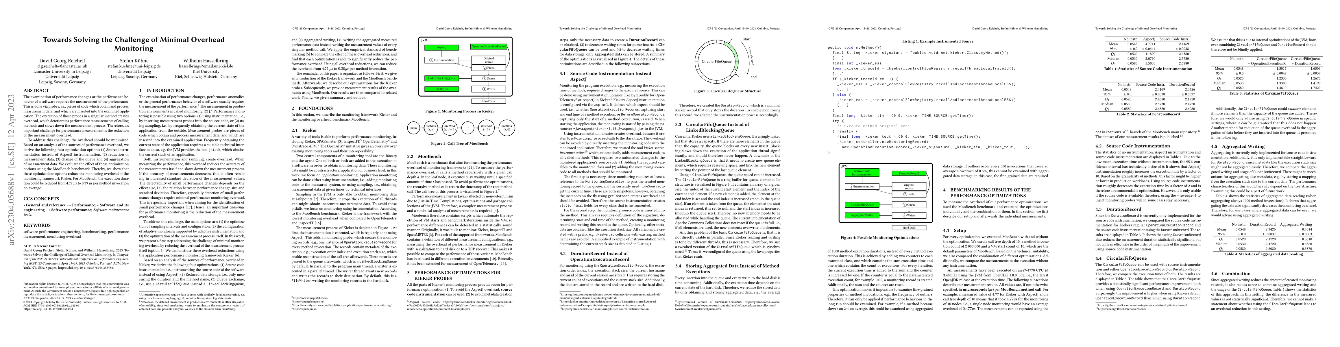 This paper explores methods to minimize the overhead caused by performance monitoring probes in software applications, proposing four optimization strategies: source instrumentation, data reduction, queue changes, and data aggregation. The effectiveness of these strategies is demonstrated through the MooBench benchmark, showing significant reduction in monitoring overhead for the Kieker framework.