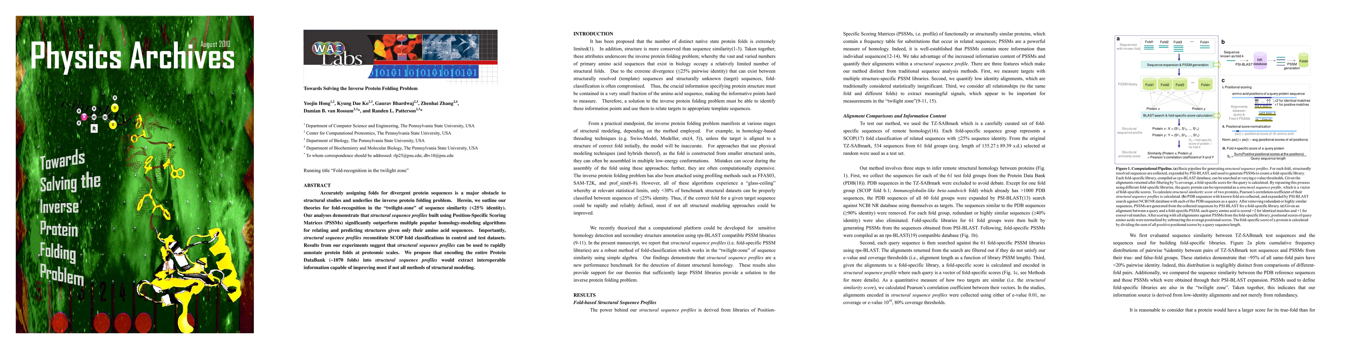 Accurately assigning folds for divergent protein sequences is a major obstacle to structural studies and underlies the inverse protein folding problem. Herein, we outline our theories for fold-recognition in the "twilight-zone" of sequence similarity (<25% identity). Our analyses demonstrate that structural sequence profiles built using Position-Specific Scoring Matrices (PSSMs) significantly outperform multiple popular homology-modeling algorithms for relating and predicting structures given only their amino acid sequences. Importantly, structural sequence profiles reconstitute SCOP fold classifications in control and test datasets. Results from our experiments suggest that structural sequence profiles can be used to rapidly annotate protein folds at proteomic scales. We propose that encoding the entire Protein DataBank (~1070 folds) into structural sequence profiles would extract interoperable information capable of improving most if not all methods of structural modeling.