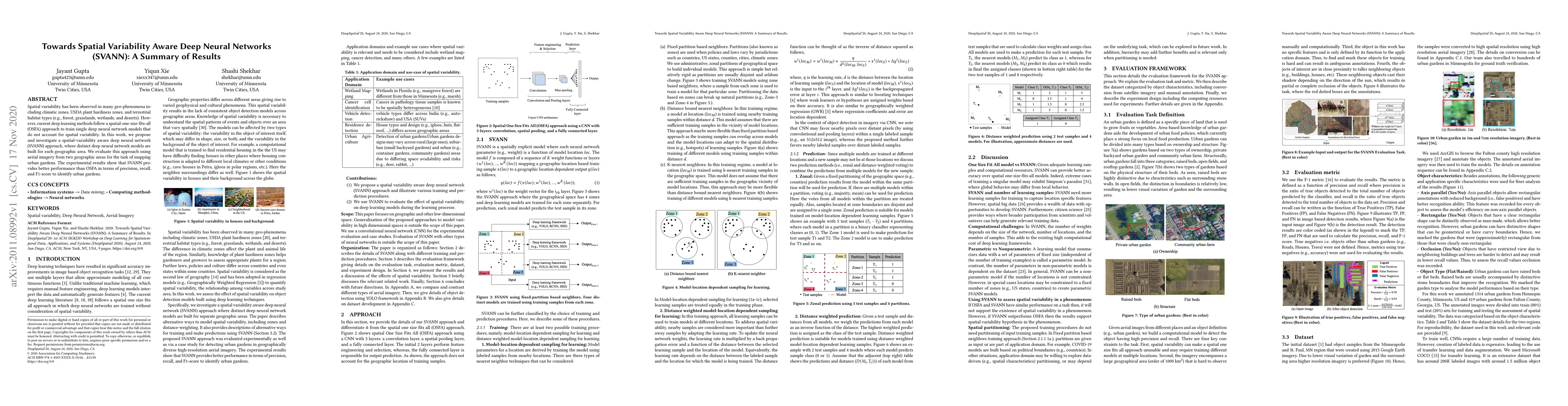 Spatial variability has been observed in many geo-phenomena including climatic zones, USDA plant hardiness zones, and terrestrial habitat types (e.g., forest, grasslands, wetlands, and deserts). However, current deep learning methods follow a spatial-one-size-fits-all(OSFA) approach to train single deep neural network models that do not account for spatial variability. In this work, we propose and investigate a spatial-variability aware deep neural network(SVANN) approach, where distinct deep neural network models are built for each geographic area. We evaluate this approach using aerial imagery from two geographic areas for the task of mapping urban gardens. The experimental results show that SVANN provides better performance than OSFA in terms of precision, recall,and F1-score to identify urban gardens.