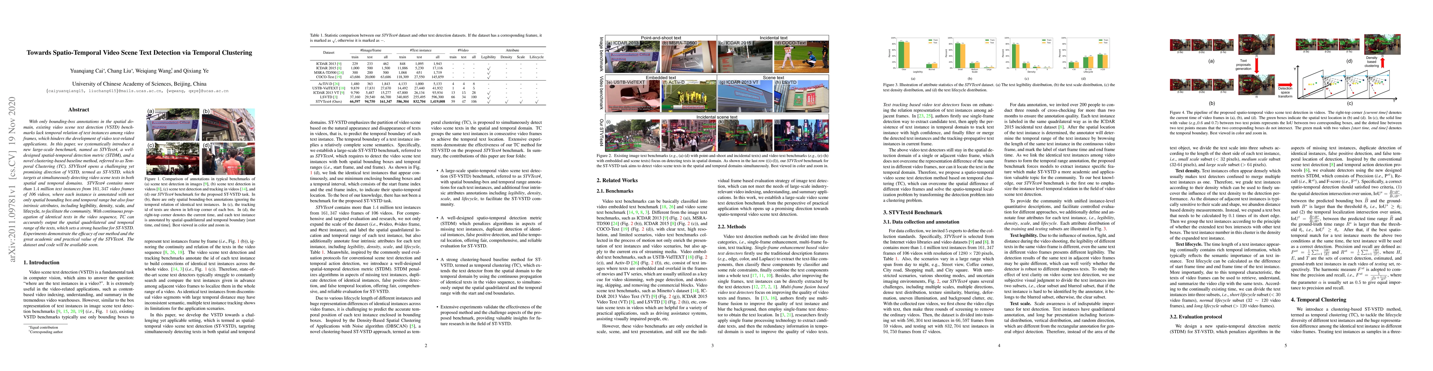 With only bounding-box annotations in the spatial domain, existing video scene text detection (VSTD) benchmarks lack temporal relation of text instances among video frames, which hinders the development of video text-related applications. In this paper, we systematically introduce a new large-scale benchmark, named as STVText4, a well-designed spatial-temporal detection metric (STDM), and a novel clustering-based baseline method, referred to as Temporal Clustering (TC). STVText4 opens a challenging yet promising direction of VSTD, termed as ST-VSTD, which targets at simultaneously detecting video scene texts in both spatial and temporal domains. STVText4 contains more than 1.4 million text instances from 161,347 video frames of 106 videos, where each instance is annotated with not only spatial bounding box and temporal range but also four intrinsic attributes, including legibility, density, scale, and lifecycle, to facilitate the community. With continuous propagation of identical texts in the video sequence, TC can accurately output the spatial quadrilateral and temporal range of the texts, which sets a strong baseline for ST-VSTD. Experiments demonstrate the efficacy of our method and the great academic and practical value of the STVText4. The dataset and code will be available soon.