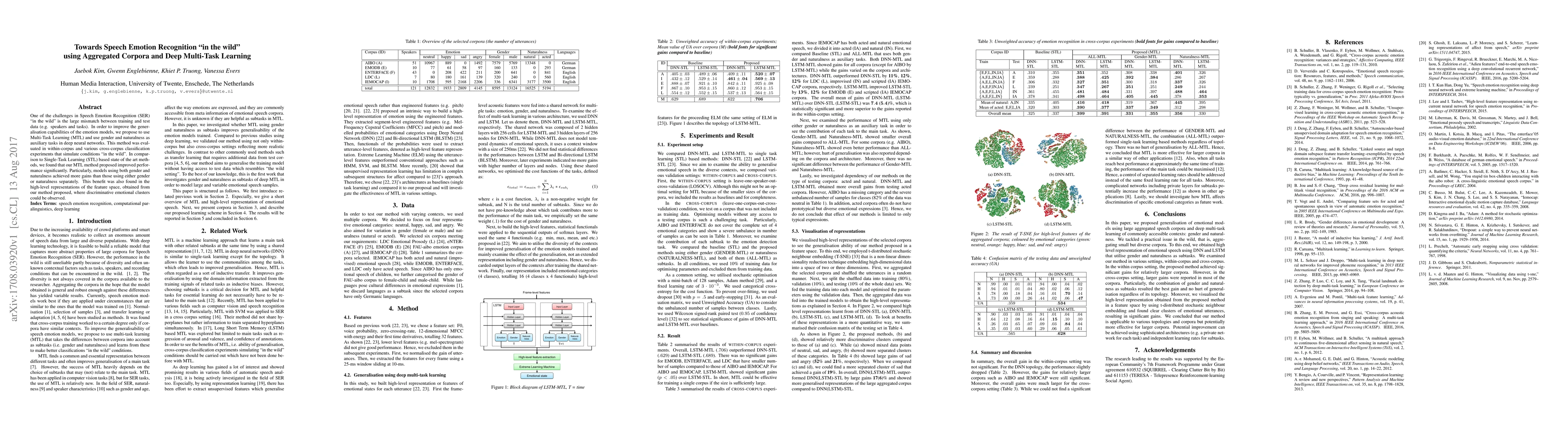 One of the challenges in Speech Emotion Recognition (SER) "in the wild" is the large mismatch between training and test data (e.g. speakers and tasks). In order to improve the generalisation capabilities of the emotion models, we propose to use Multi-Task Learning (MTL) and use gender and naturalness as auxiliary tasks in deep neural networks. This method was evaluated in within-corpus and various cross-corpus classification experiments that simulate conditions "in the wild". In comparison to Single-Task Learning (STL) based state of the art methods, we found that our MTL method proposed improved performance significantly. Particularly, models using both gender and naturalness achieved more gains than those using either gender or naturalness separately. This benefit was also found in the high-level representations of the feature space, obtained from our method proposed, where discriminative emotional clusters could be observed.