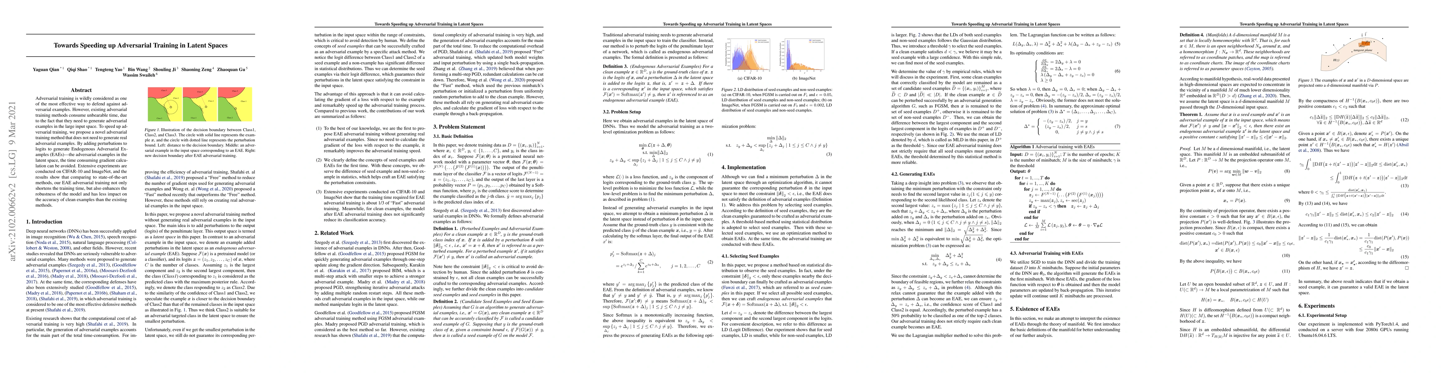 A new adversarial training method reduces time by generating Endogenous Adversarial Examples (EAEs) in the latent space, improving model robustness without affecting accuracy on clean examples.