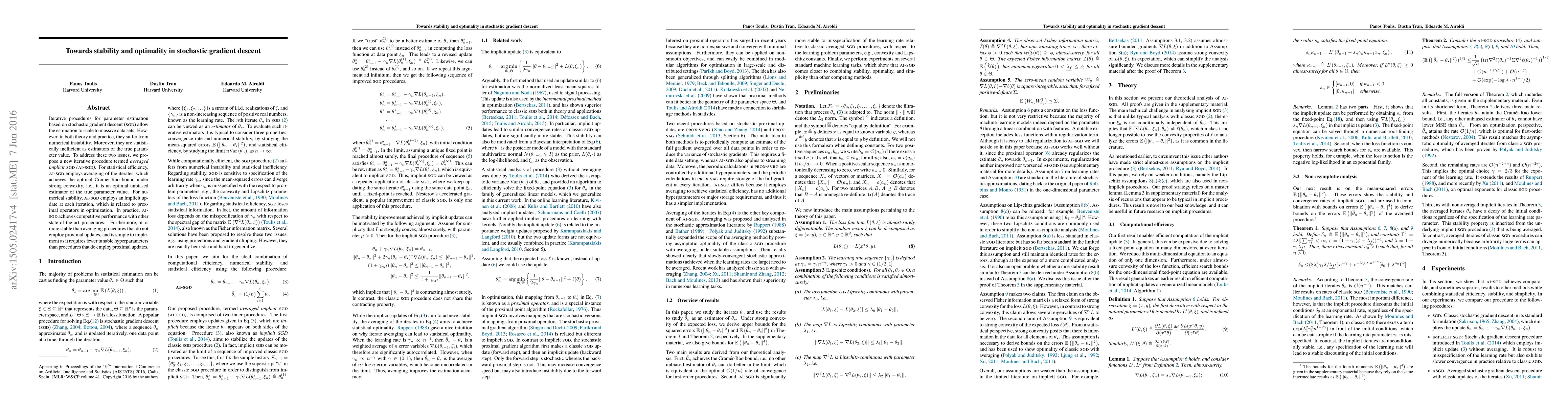 The paper introduces Averaged Implicit SGD (AI-SGD), a method addressing numerical instability and statistical inefficiency in stochastic gradient descent. AI-SGD combines averaging of iterates for optimal statistical efficiency and implicit updates for numerical stability, outperforming other methods in practice with fewer hyperparameters to tune.