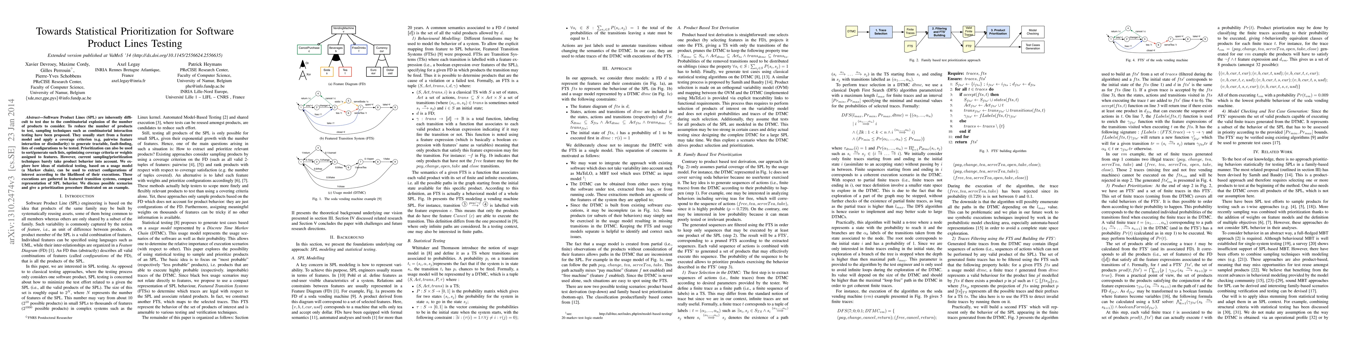 Software Product Lines (SPL) are inherently difficult to test due to the combinatorial explosion of the number of products to consider. To reduce the number of products to test, sampling techniques such as combinatorial interaction testing have been proposed. They usually start from a feature model and apply a coverage criterion (e.g. pairwise feature interaction or dissimilarity) to generate tractable, fault-finding, lists of configurations to be tested. Prioritization can also be used to sort/generate such lists, optimizing coverage criteria or weights assigned to features. However, current sampling/prioritization techniques barely take product behavior into account. We explore how ideas of statistical testing, based on a usage model (a Markov chain), can be used to extract configurations of interest according to the likelihood of their executions. These executions are gathered in featured transition systems, compact representation of SPL behavior. We discuss possible scenarios and give a prioritization procedure illustrated on an example.
