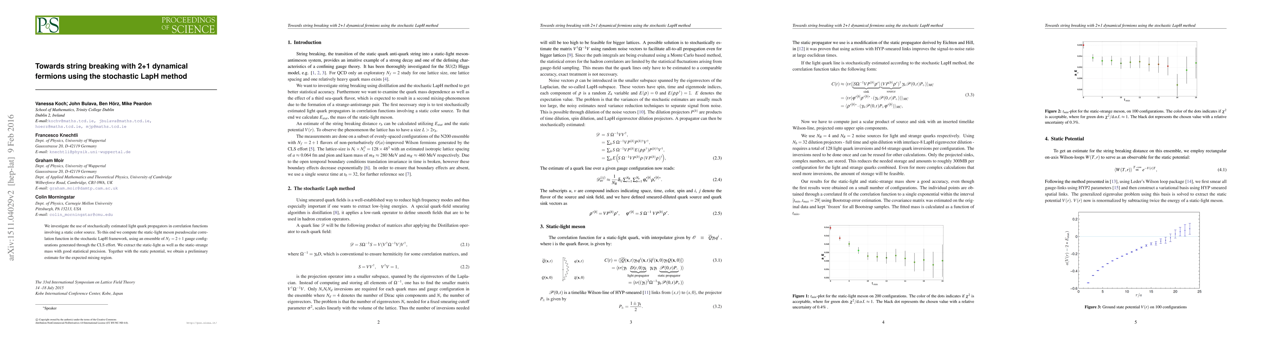 The paper introduces the use of the stochastic LapH method for accurately determining temporal correlations for static-light mesons, enabling the investigation of string breaking in QCD with dynamical fermions.