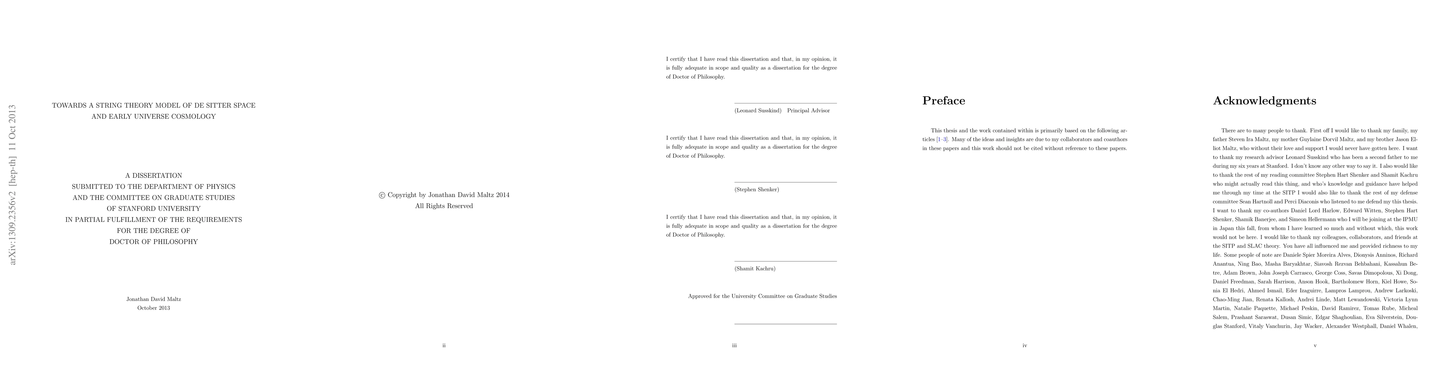 This thesis explores String Theory models of DeSitter Space and early Universe cosmology, aiming to reconcile General Relativity with Quantum Mechanics in exponentially expanding space-times. It discusses key findings on Liouville Theory and Chern-Simons Matter duals for a deeper understanding of de Sitter Space.