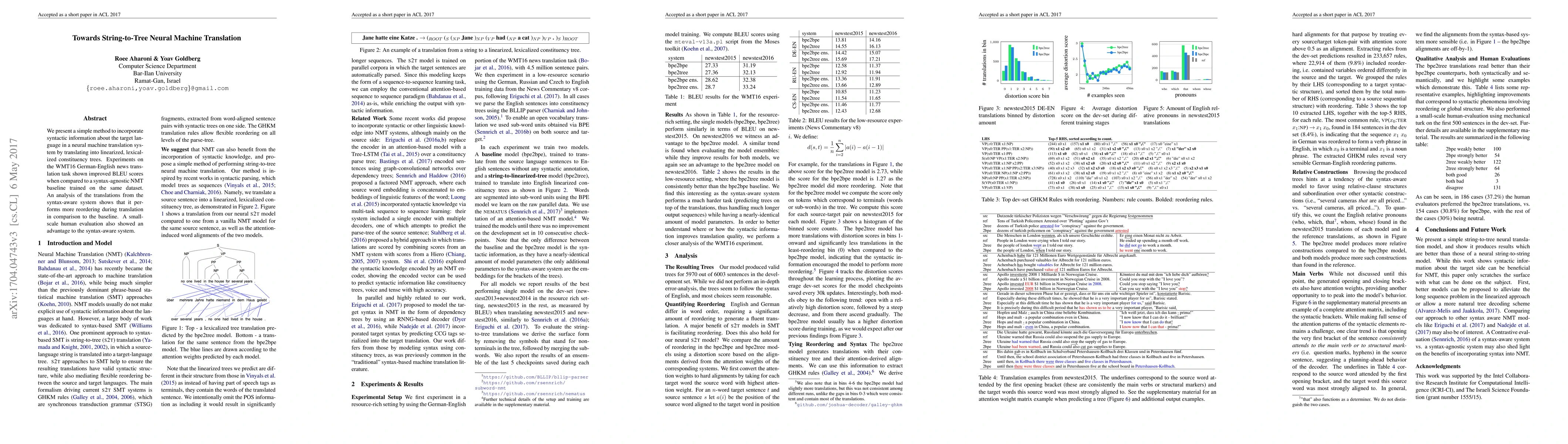 This paper proposes a method for incorporating syntactic information into neural machine translation by translating into linearized, lexicalized constituency trees, resulting in improved BLEU scores and better reordering compared to a syntax-agnostic baseline, as evidenced by an experiment on the WMT16 German-English dataset.