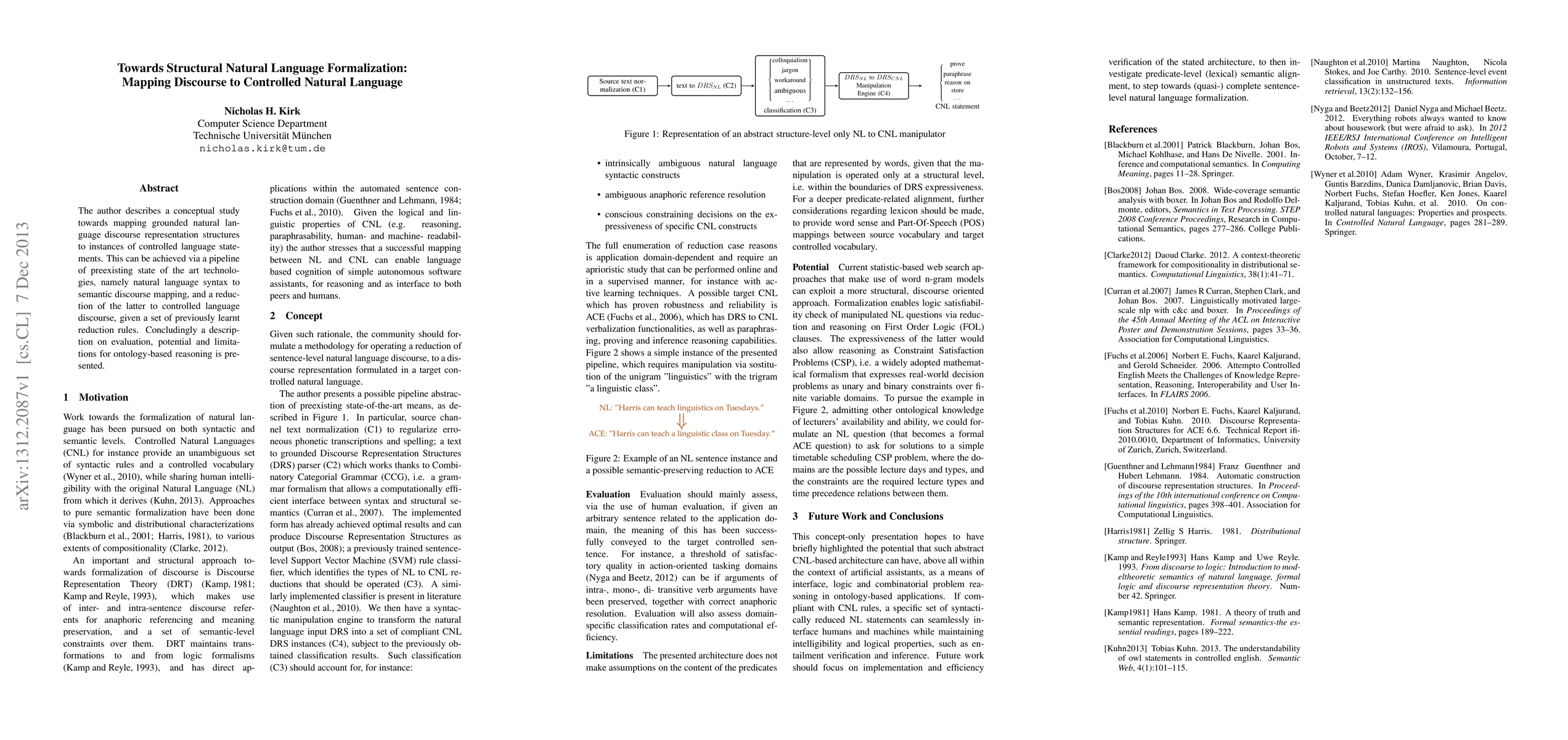 The paper introduces a methodology for reducing sentence-level natural language discourse to a discourse representation formulated in a target controlled natural language, utilizing existing technologies for text normalization, DRS parsing, and syntactic manipulation.