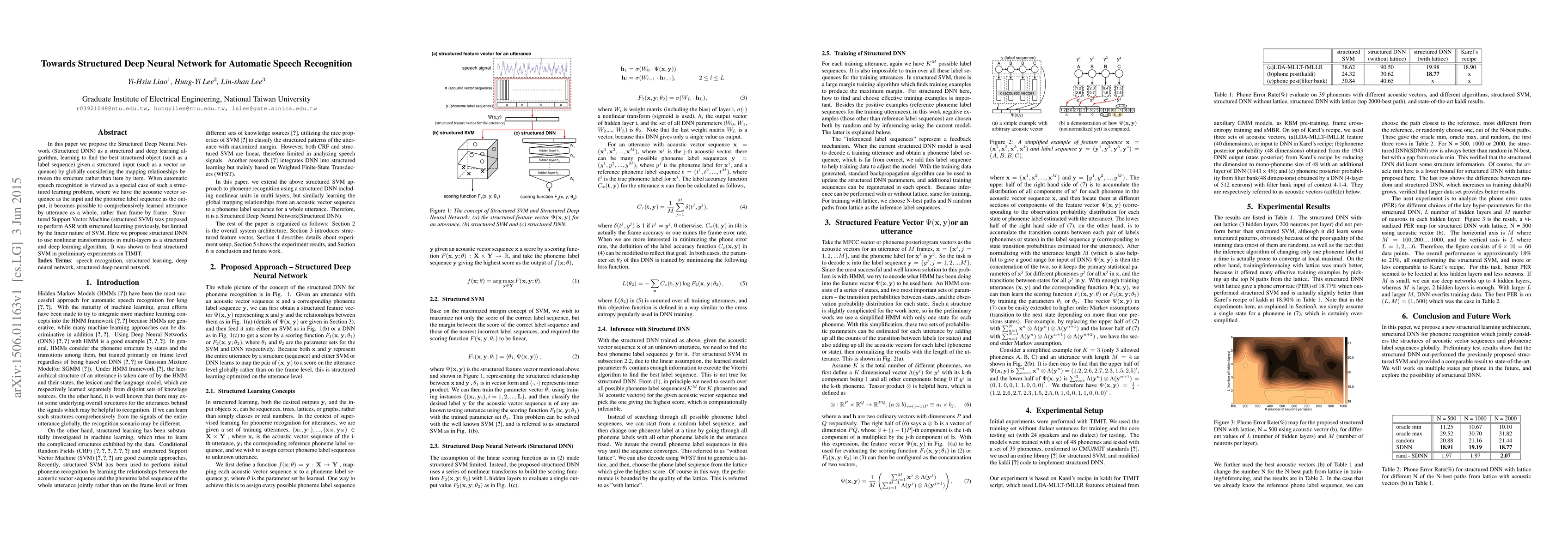 This paper proposes a Structured Deep Neural Network (Structured DNN) for automatic speech recognition, leveraging deep learning to holistically map acoustic vector sequences to phoneme label sequences, surpassing the limitations of linear Structured Support Vector Machines (structured SVM) in preliminary experiments on TIMIT.