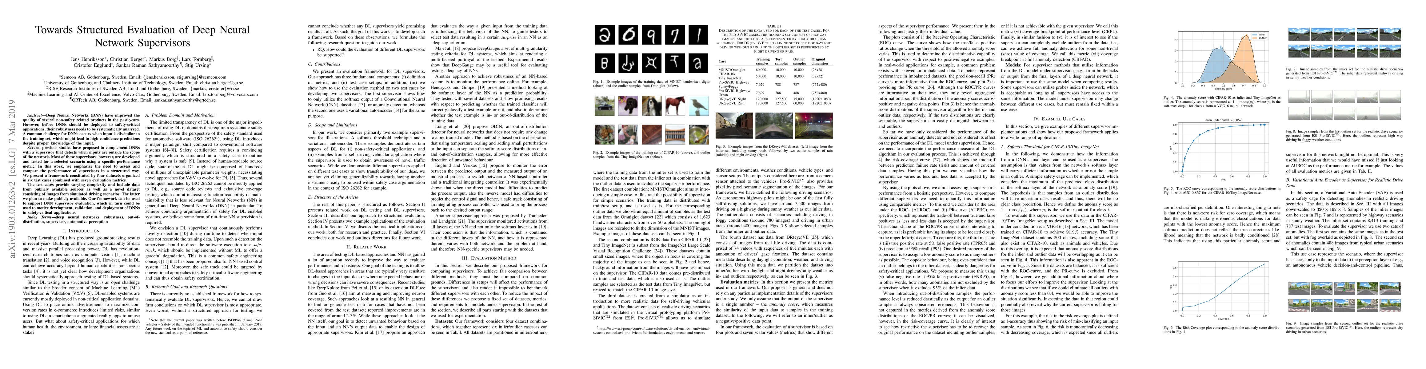 This paper proposes a structured evaluation framework for assessing the performance of Deep Neural Network (DNN) supervisors, aiming to improve their robustness for safety-critical applications. The framework includes four datasets, six test cases, and seven evaluation metrics to systematically compare supervisor effectiveness.