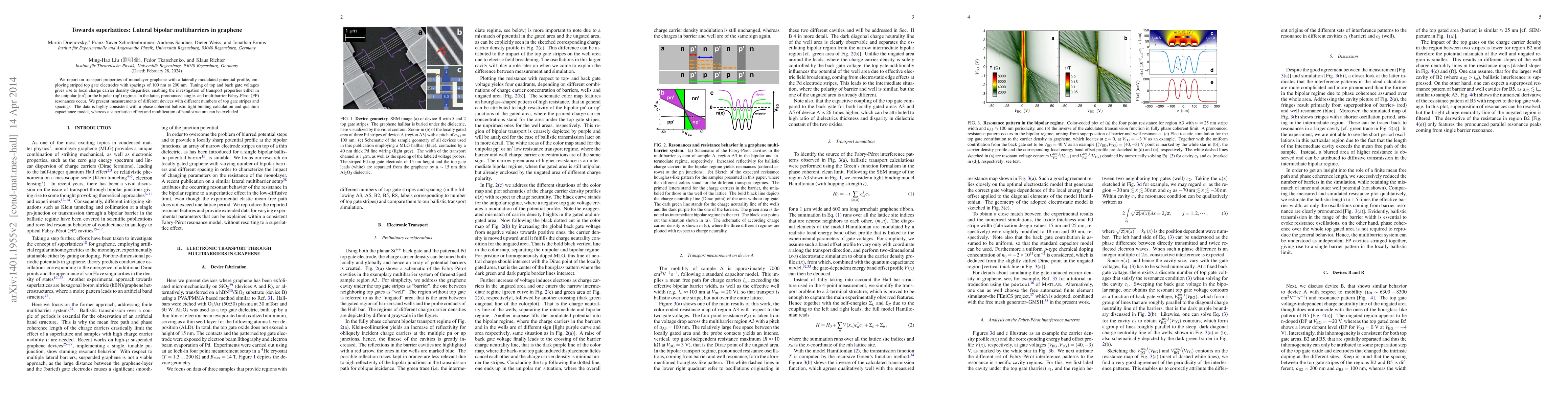 We report on transport properties of monolayer graphene with a laterally modulated potential profile, employing striped top gate electrodes with spacings of 100 nm to 200 nm. Tuning of top and back gate voltages gives rise to local charge carrier density disparities, enabling the investigation of transport properties either in the unipolar (nn') or the bipolar (np') regime. In the latter pronounced single- and multibarrier Fabry-Perot (FP) resonances occur. We present measurements of different devices with different numbers of top gate stripes and spacings. The data are highly consistent with a phase coherent ballistic tight binding calculation and quantum capacitance model, whereas a superlattice effect and modification of band structure can be excluded.