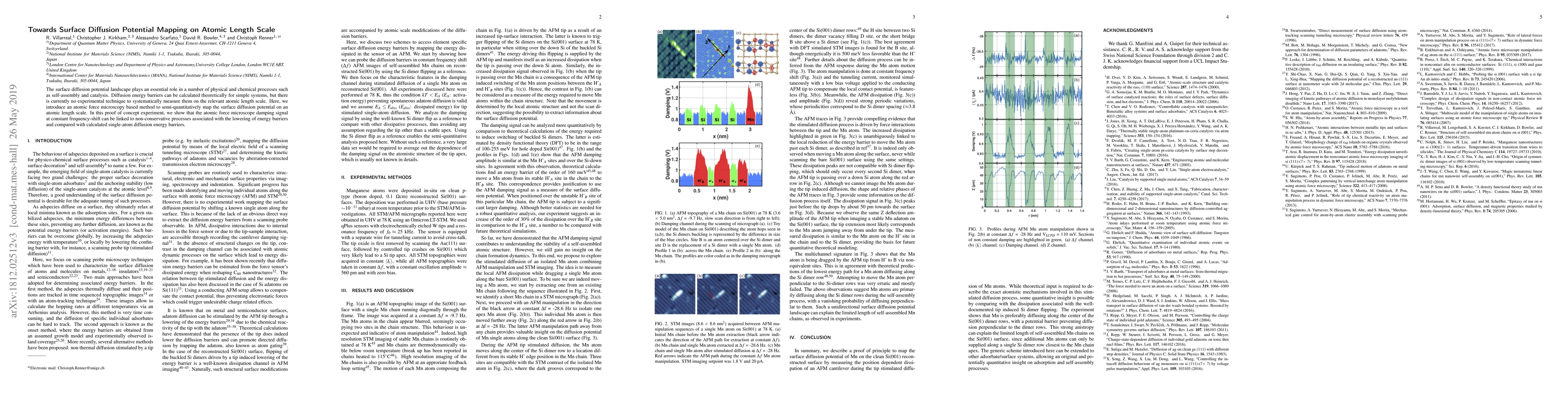 This paper introduces an atomic force microscopy technique to semiquantitatively map surface diffusion potentials on an atomic scale, demonstrating that the damping signal can correlate with energy barriers for single-atom diffusion, providing a method to measure these barriers experimentally.