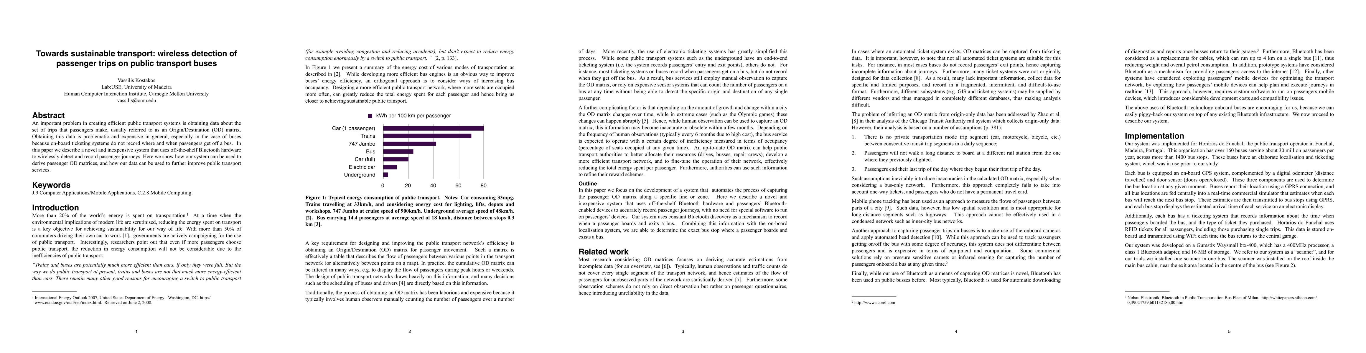 An important problem in creating efficient public transport is obtaining data about the set of trips that passengers make, usually referred to as an Origin/Destination (OD) matrix. Obtaining this data is problematic and expensive in general, especially in the case of buses because on-board ticketing systems do not record where and when passengers get off a bus. In this paper we describe a novel and inexpensive system that uses off-the-shelf Bluetooth hardware to accurately record passenger journeys. Here we show how our system can be used to derive passenger OD matrices, and additionally we show how our data can be used to further improve public transport services.