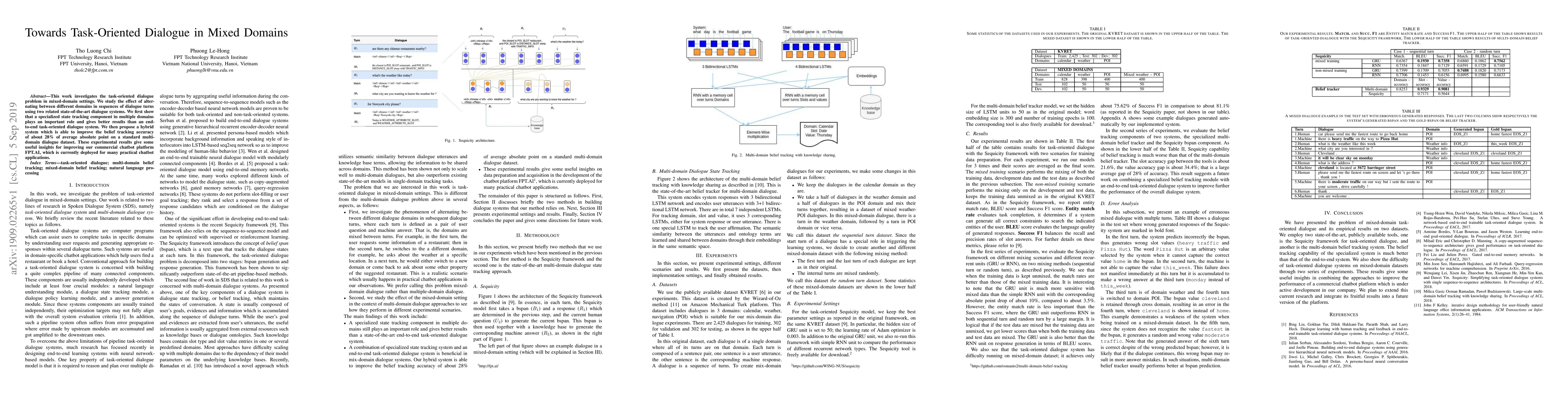 This paper explores task-oriented dialogue in mixed-domain settings, demonstrating that a specialized state tracking component outperforms end-to-end systems. A proposed hybrid system significantly enhances belief tracking accuracy by 28%, providing valuable insights for improving the FPT.AI commercial chatbot platform.
