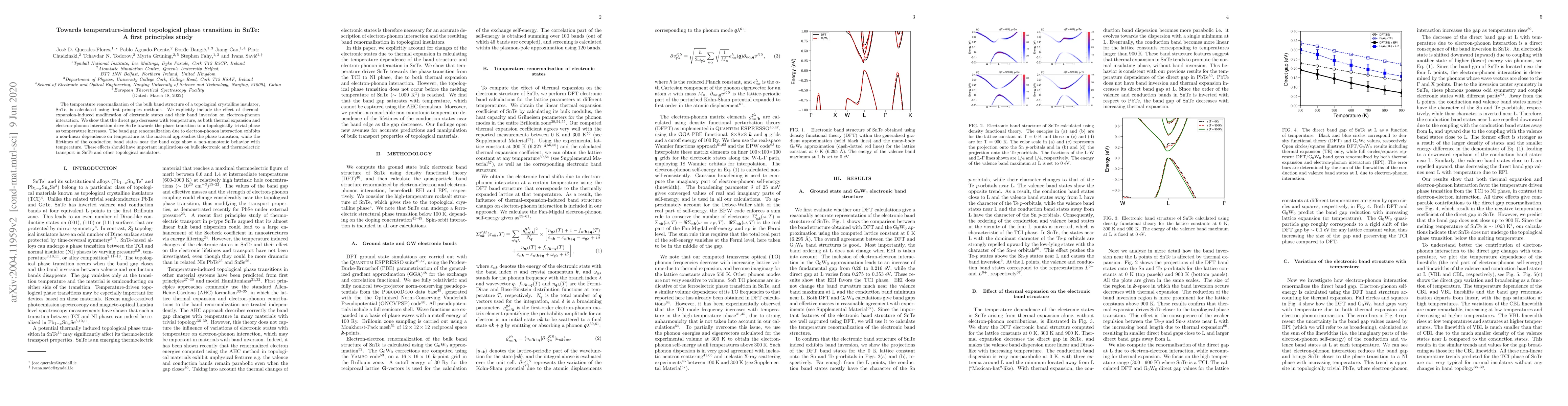 This study investigates the temperature-induced topological phase transition in SnTe using first principles methods, revealing that thermal expansion and electron-phonon interactions drive SnTe towards a topologically trivial phase as temperature rises. The non-linear temperature dependence of the band gap and non-monotonic behavior of conduction band state lifetimes suggest significant impacts on electronic and thermoelectric properties.