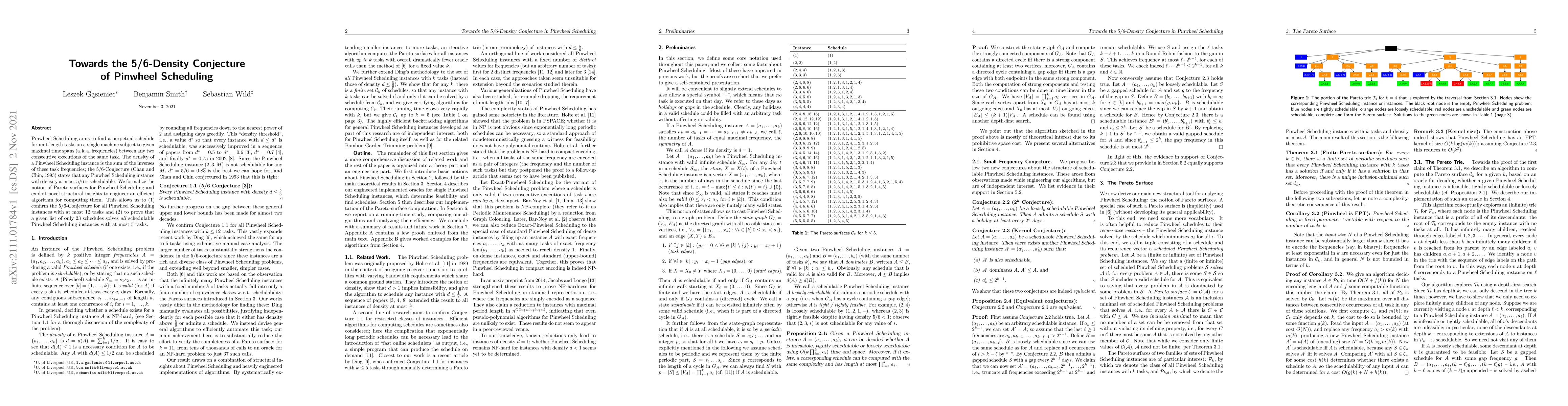 Pinwheel Scheduling aims to find a perpetual schedule for unit-length tasks on a single machine subject to given maximal time spans (a.k.a. frequencies) between any two consecutive executions of the same task. The density of a Pinwheel Scheduling instance is the sum of the inverses of these task frequencies; the 5/6-Conjecture (Chan and Chin, 1993) states that any Pinwheel Scheduling instance with density at most 5/6 is schedulable. We formalize the notion of Pareto surfaces for Pinwheel Scheduling and exploit novel structural insights to engineer an efficient algorithm for computing them. This allows us to (1) confirm the 5/6-Conjecture for all Pinwheel Scheduling instances with at most 12 tasks and (2) to prove that a given list of only 23 schedules solves all schedulable Pinwheel Scheduling instances with at most 5 tasks.