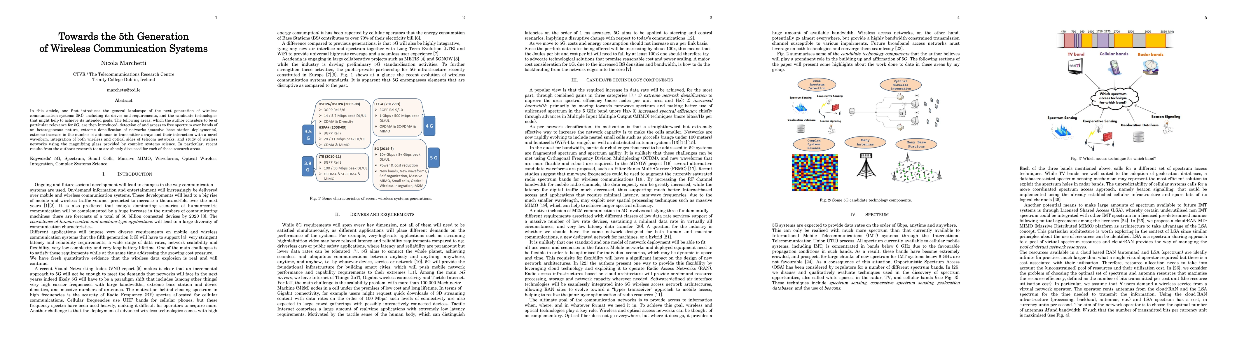 This paper explores the landscape of 5G wireless communication systems, focusing on key technologies like spectrum detection, network densification, massive MIMO, and the integration of wireless and optical networks. It highlights recent research findings in these areas.