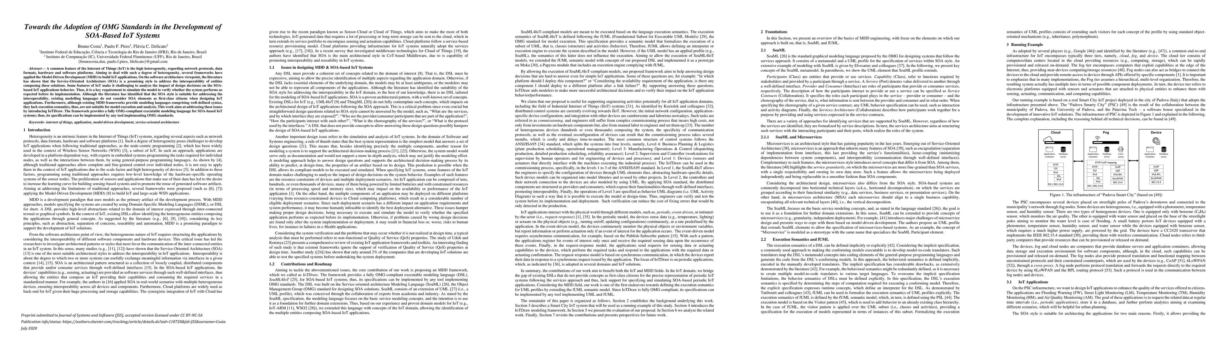 This paper proposes IoTDraw, a framework that introduces an OMG-compliant executable modeling language for Service-Oriented Architecture (SOA)-based Internet of Things (IoT) systems, aiming to address interoperability and the lack of execution semantics in existing MDD frameworks. The framework allows for the simulation and verification of IoT systems' behavior before implementation.