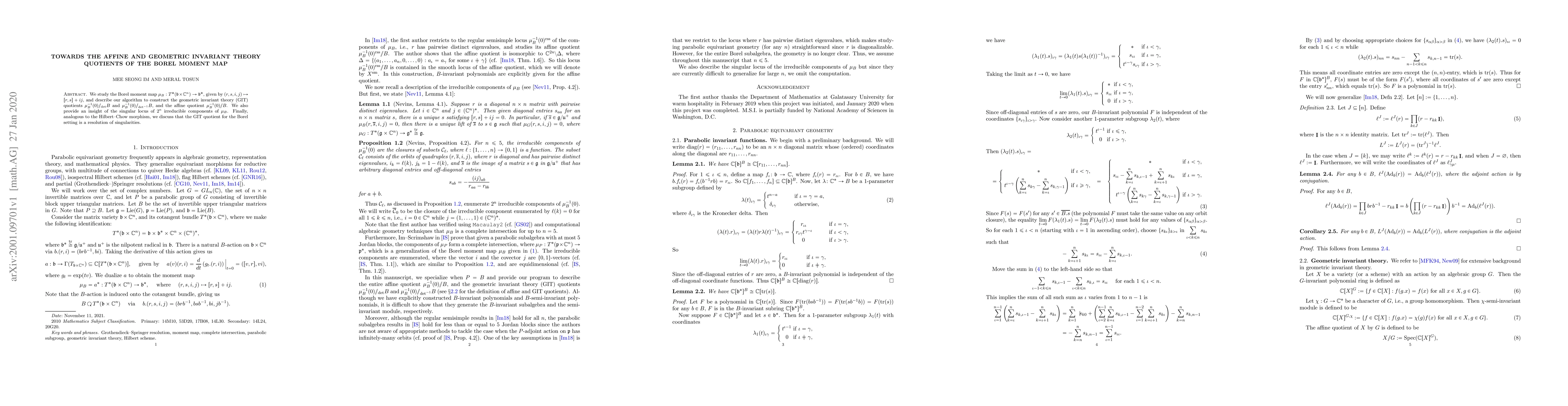 This paper explores the geometric invariant theory quotients of the Borel moment map, providing insights into its algorithmic construction and implications for resolutions of singularities in GIT settings.