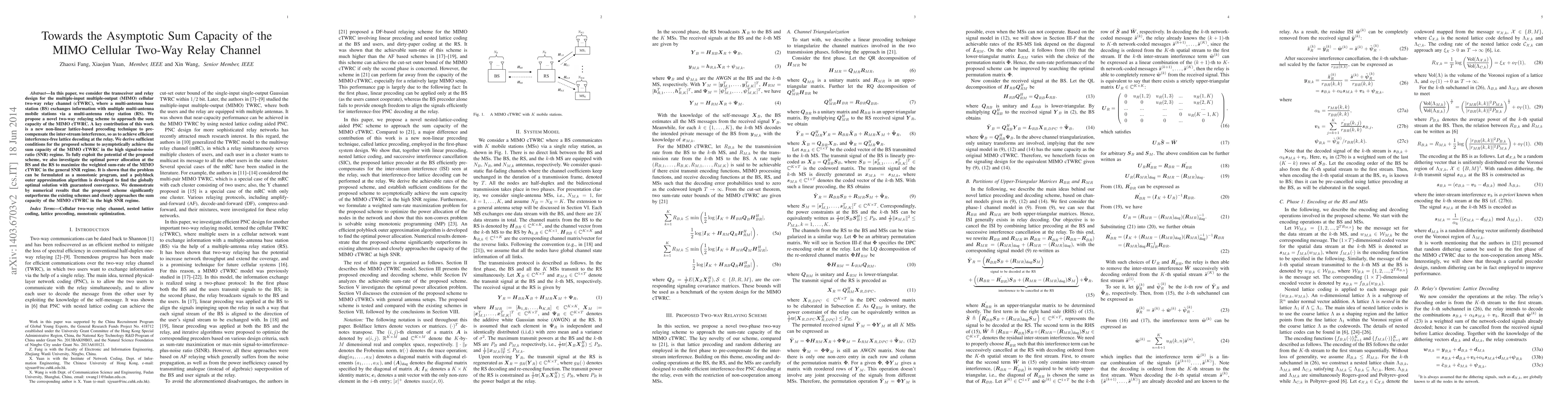 This paper proposes a novel two-way relaying scheme for MIMO cellular two-way relay channels to enhance transceiver and relay design, aiming to approach the asymptotic sum capacity. The scheme involves a multi-antenna base station communicating with multiple mobile stations through a relay station.