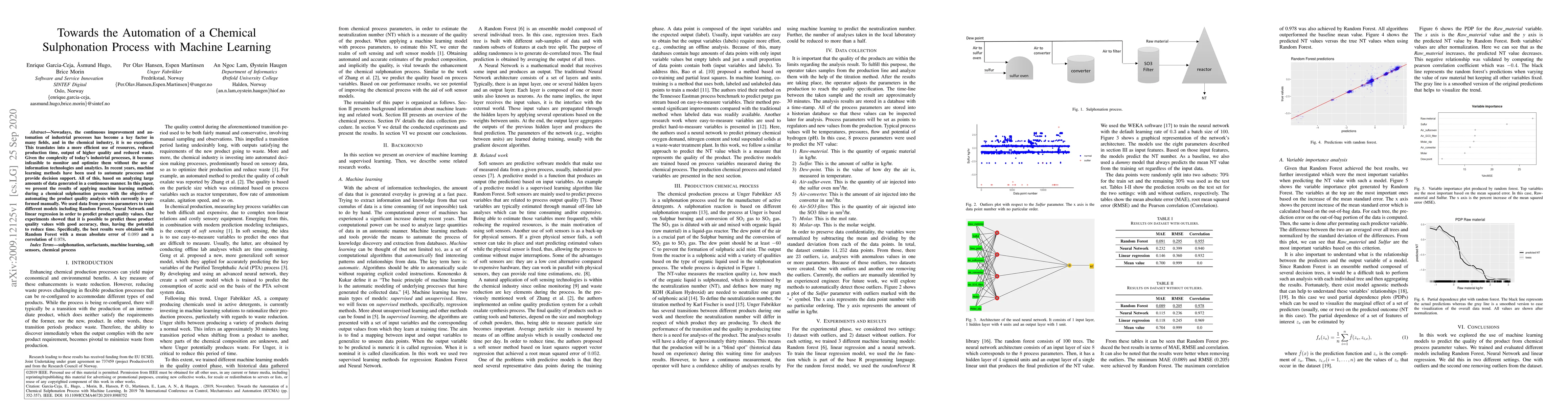 Researchers used machine learning to automate quality analysis in a chemical sulphonation process, achieving accurate predictions with a Random Forest model.