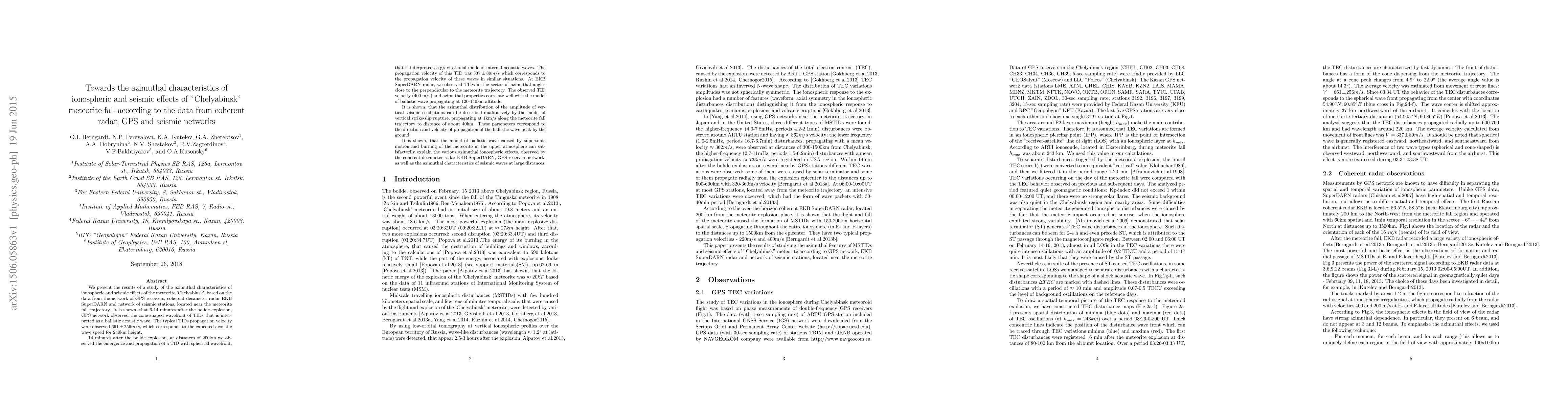 This paper investigates the azimuthal characteristics of ionospheric and seismic effects caused by the "Chelyabinsk" meteorite using data from GPS, radar, and seismic networks. It finds that ionospheric disturbances propagated at different velocities and shapes, correlating with ballistic and gravitational acoustic waves, while seismic effects align with a vertical strike-slip rupture model.