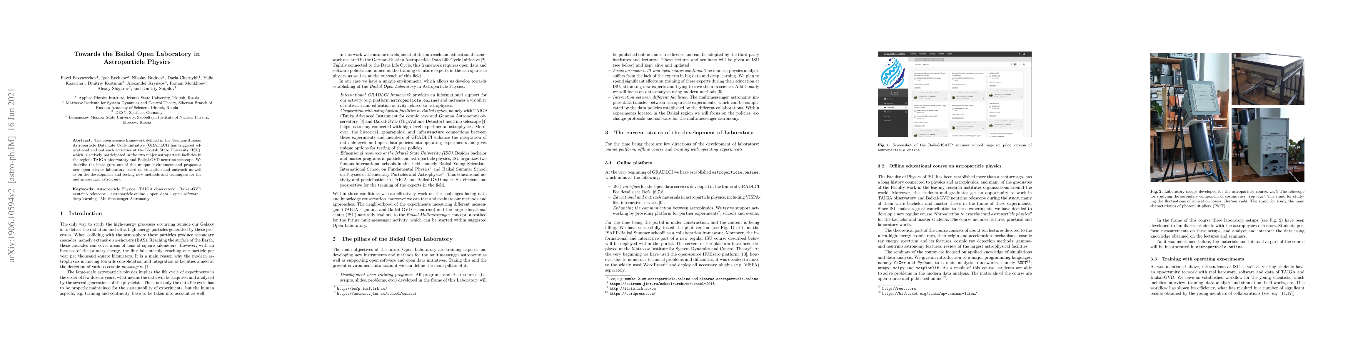 This paper outlines the educational and outreach initiatives stemming from the German-Russian Astroparticle Data Life Cycle Initiative (GRADLCI) at Irkutsk State University, emphasizing participation in TAIGA and Baikal-GVD projects. It proposes a new open science laboratory focused on education, outreach, and the development of new methods for multimessenger astronomy.