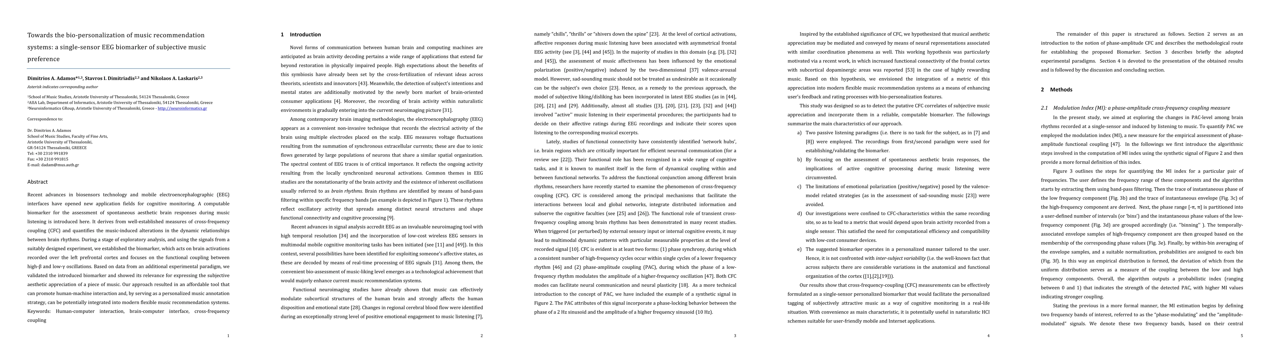 This paper introduces a computable EEG biomarker for assessing aesthetic brain responses during music listening, derived from cross-frequency coupling measures. It validates the biomarker's relevance in expressing subjective music preference and suggests its integration into personalized music recommendation systems.
