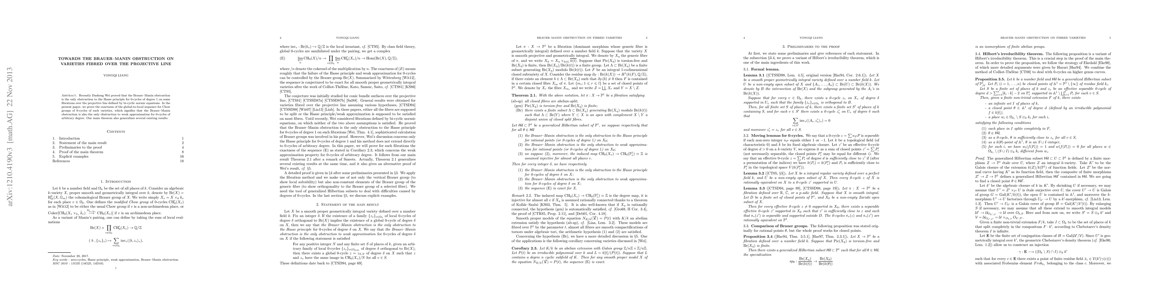 The paper proves that the Brauer-Manin obstruction is the sole obstacle to weak approximation for 0-cycles of arbitrary degree on varieties fibered over the projective line, generalizing previous results established by Dasheng Wei for degree 1 cycles. This confirms the exactness of the global-to-local sequence for Chow groups of these cycles.