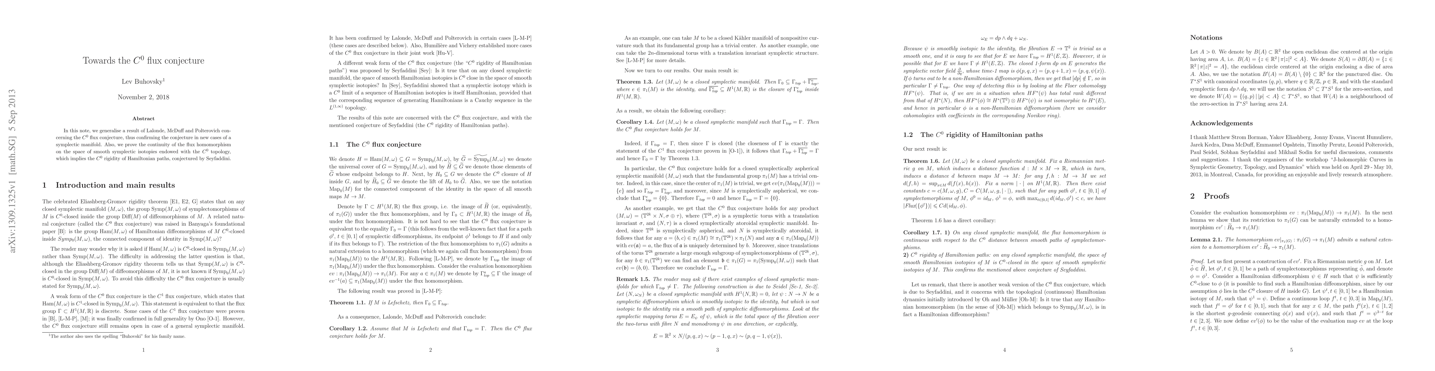 In this note, we generalise a result of Lalonde, McDuff and Polterovich concerning the $ C^0 $ flux conjecture, thus confirming the conjecture in new cases of a symplectic manifold. Also, we prove the continuity of the flux homomorphism on the space of smooth symplectic isotopies endowed with the $ C^0 $ topology, which implies the $ C^0 $ rigidity of Hamiltonian paths, conjectured by Seyfaddini.