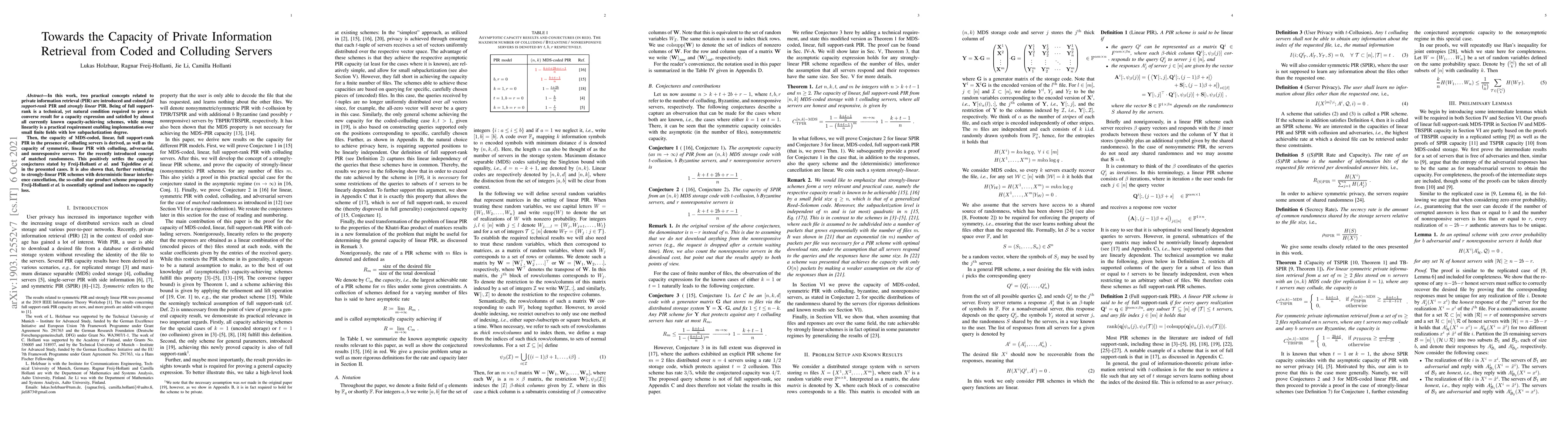 In this work, two practical concepts related to private information retrieval (PIR) are introduced and coined full support-rank PIR and strongly linear PIR. Being of full support-rank is a technical, yet natural condition required to prove a converse result for a capacity expression and satisfied by almost all currently known capacity-achieving schemes, while strong linearity is a practical requirement enabling implementation over small finite fields with low subpacketization degree. Then, the capacity of MDS-coded, linear, full support-rank PIR in the presence of colluding servers is derived, as well as the capacity of symmetric, linear PIR with colluding, adversarial, and nonresponsive servers for the recently introduced concept of matched randomness. This positively settles the capacity conjectures stated by Freij-Hollanti et al. and Tajeddine et al. in the presented cases. It is also shown that, further restricting to strongly-linear PIR schemes with deterministic linear interference cancellation, the so-called star product scheme proposed by Freij-Hollanti et al. is essentially optimal and induces no capacity loss.