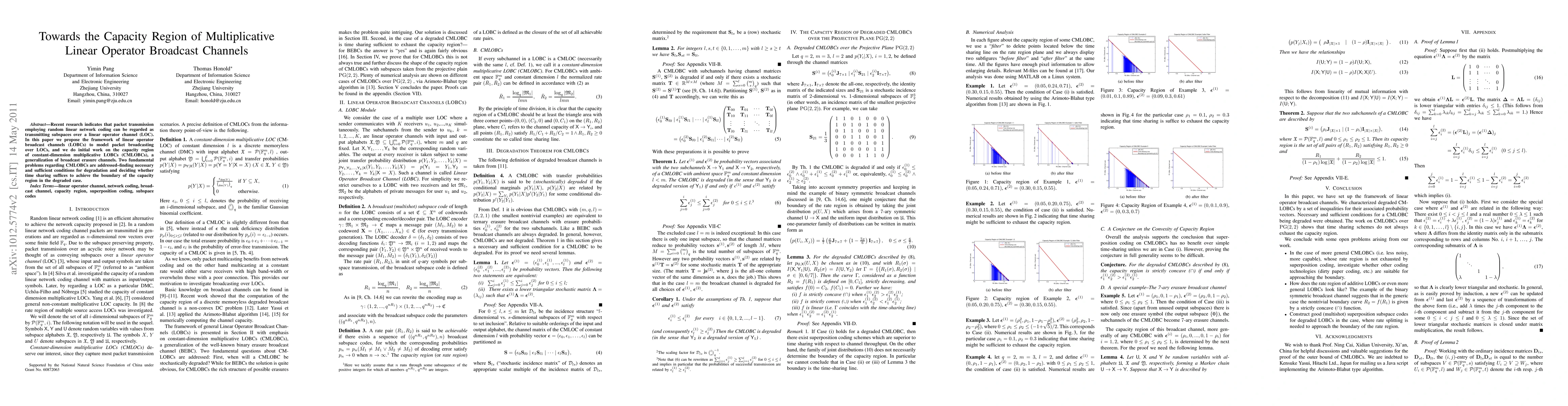 This paper introduces linear operator broadcast channels (LOBCs) to model packet broadcasting over linear operator channels (LOCs) and explores the capacity region of constant-dimension multiplicative LOBCs (CMLOBCs). It addresses the conditions for degradation and the sufficiency of time sharing for achieving the capacity region boundary.