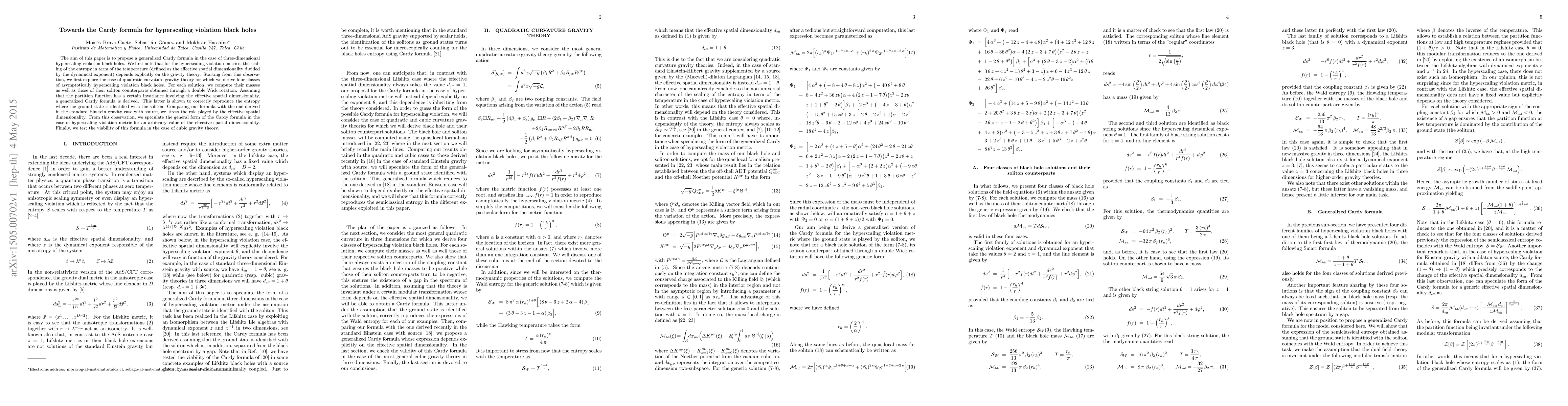 The aim of this paper is to propose a generalized Cardy formula in the case of three-dimensional hyperscaling violation black holes. We first note that for the hyperscaling violation metrics, the scaling of the entropy in term of the temperature (defined as the effective spatial dimensionality divided by the dynamical exponent) depends explicitly on the gravity theory. Starting from this observation, we first explore the case of quadratic curvature gravity theory for which we derive four classes of asymptotically hyperscaling violation black holes. For each solution, we compute their masses as well as those of their soliton counterparts obtained through a double Wick rotation. Assuming that the partition function has a certain invariance involving the effective spatial dimensionality, a generalized Cardy formula is derived. This latter is shown to correctly reproduce the entropy where the ground state is identified with the soliton. Comparing our formula with the one derived in the standard Einstein gravity case with source, we stress the role played by the effective spatial dimensionality. From this observation, we speculate the general form of the Cardy formula in the case of hyperscaling violation metric for an arbitrary value of the effective spatial dimensionality. Finally, we test the viability of this formula in the case of cubic gravity theory.