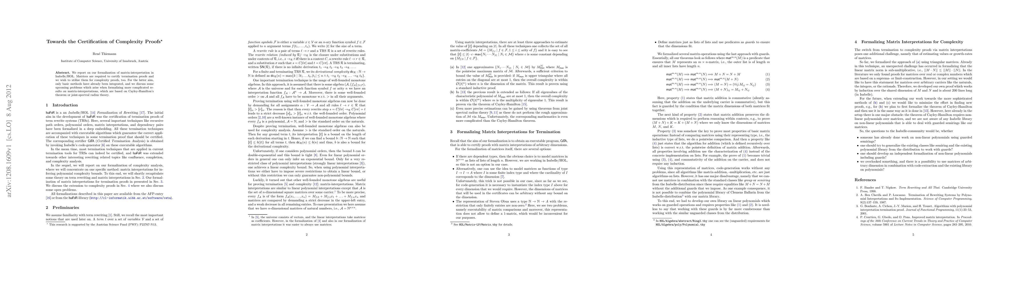 Researchers formalized matrix-interpretation in Isabelle/HOL to certify complexity proofs, particularly for termination proofs.