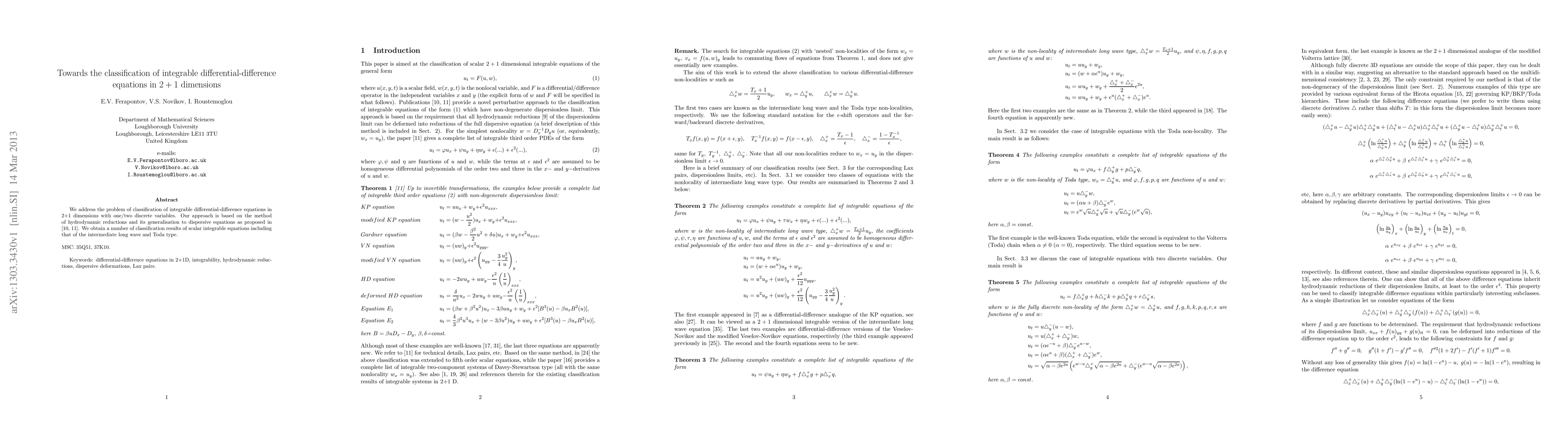 This paper classifies integrable differential-difference equations in 2+1 dimensions using hydrodynamic reductions and dispersive equation generalizations, achieving results for scalar equations like the intermediate long wave and Toda types.