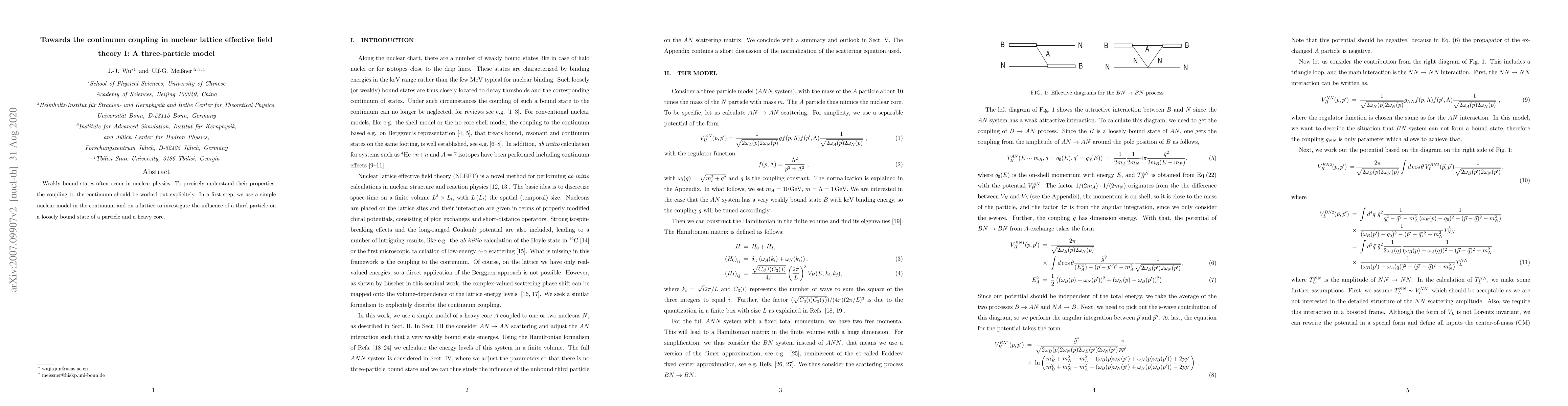 Weakly bound states often occur in nuclear physics. To precisely understand their properties, the coupling to the continuum should be worked out explicitely. In a first step, we use a simple nuclear model in the continuum and on a lattice to investigate the influence of a third particle on a loosely bound state of a particle and a heavy core.