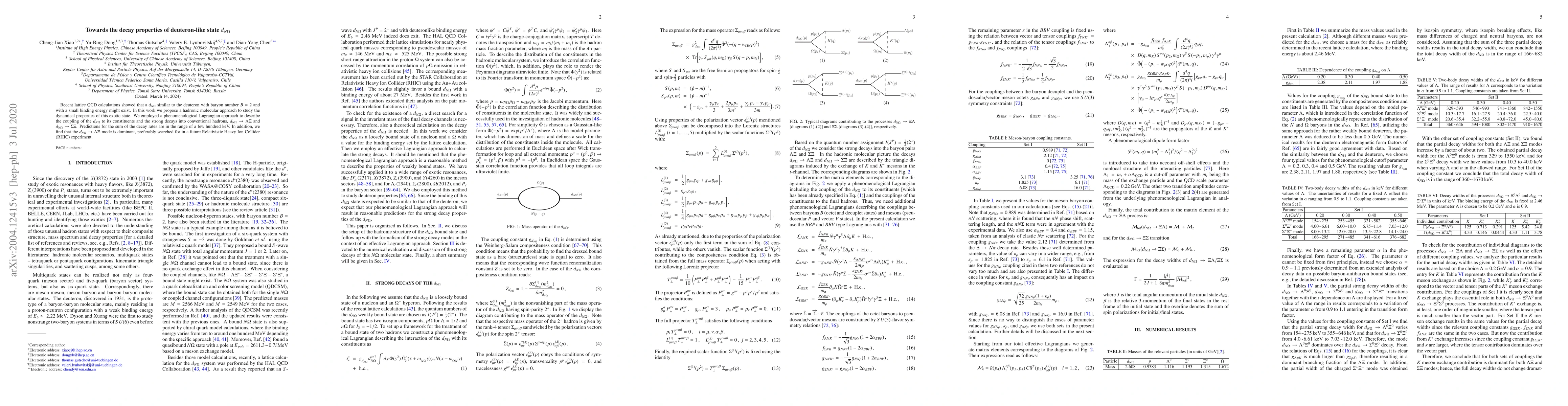 Recent lattice QCD calculations showed that a $d_{N\Omega}$ dibaryon state similar to the deuteron with small binding energy may exist. In this work we propose a hadronic molecular approach to study the dynamical properties of this exotic state. We use a phenomenological Lagrangian approach to describe the coupling of the $d_{N\Omega}$ state to its constituents and the decays into conventional hadrons, $d_{N\Omega} \to \Lambda \Xi$ and $d_{N\Omega} \to \Sigma \Xi$. Predictions for the sum of the decay rates are in the range of a few hundred keV. In addition, we find that the $d_{N\Omega} \to \Lambda \Xi$ mode is dominant, preferably searched for in a future RHIC experiment.