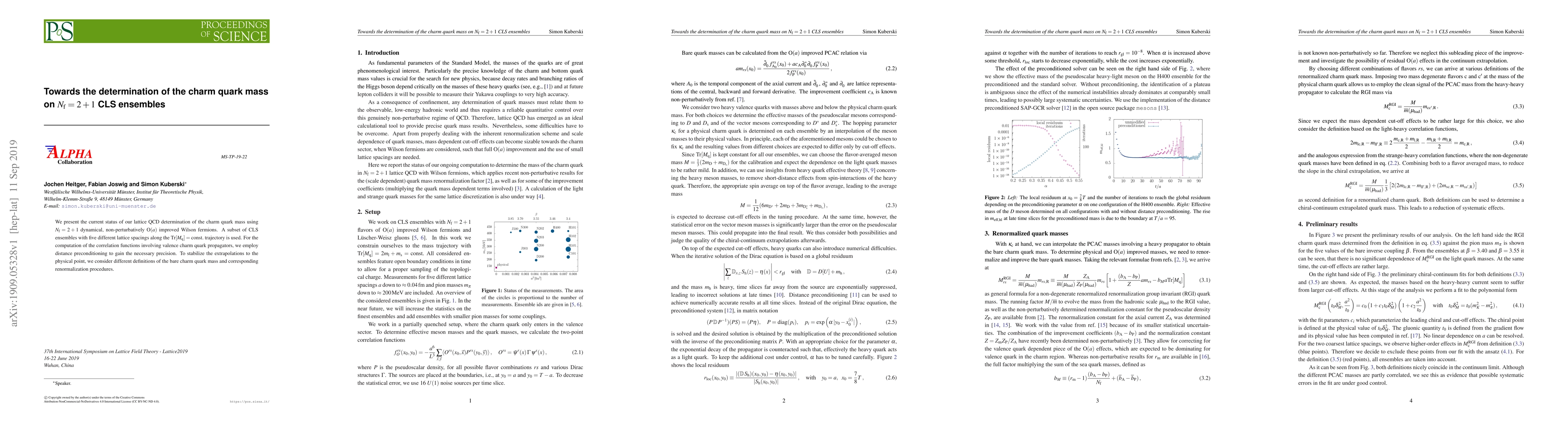 Researchers used lattice QCD to determine the charm quark mass using $N_ mf = 2+1$ dynamical fermions with varying lattice spacings, employing distance preconditioning and multiple definitions of the bare quark mass.